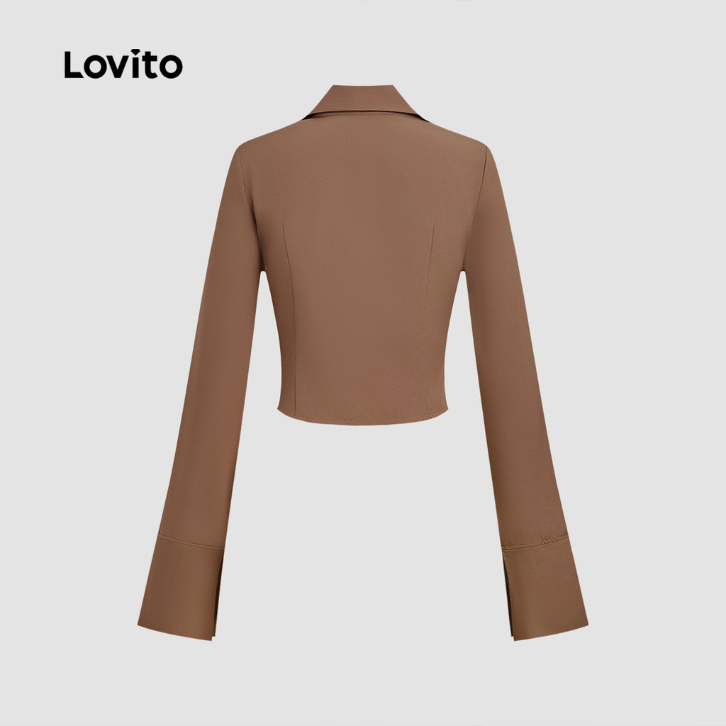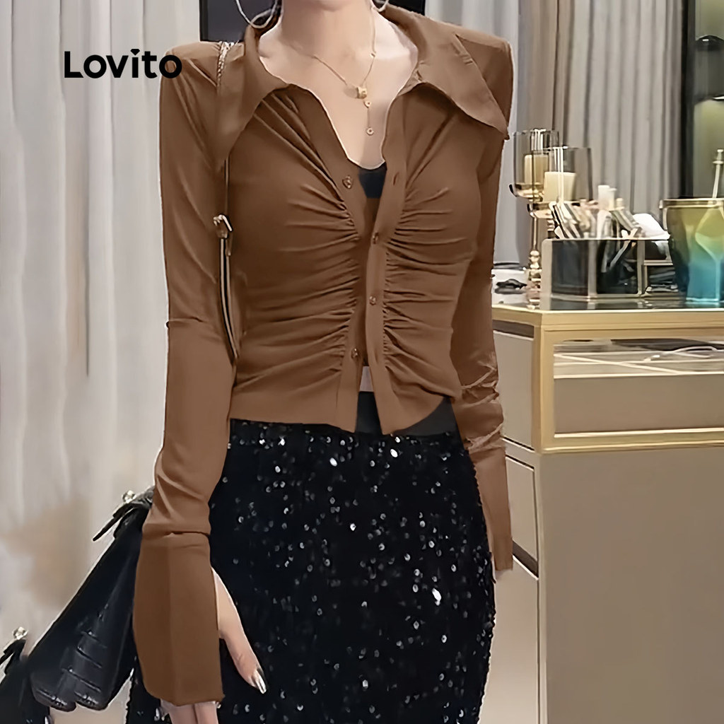 Lovito Blusa Casual Confortável Elegante Babados Botões Na Cor Carmesim Outono/inverno Para Mulheres L159AD241
