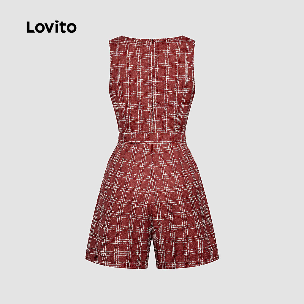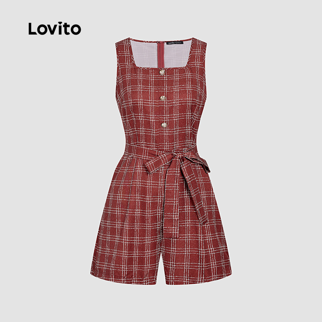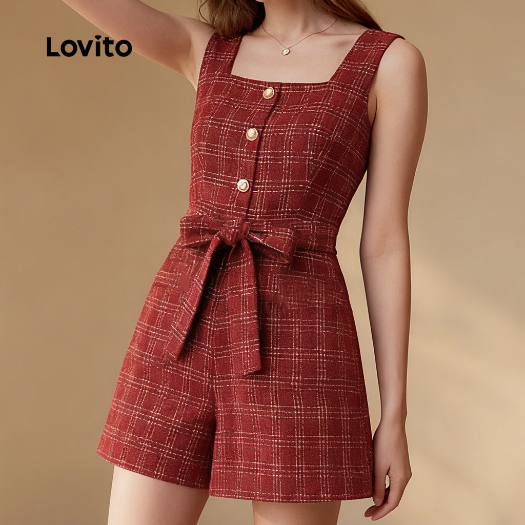Lovito Macacão Elegante De Festa Com Botões Frontais Vermelho Para Mulheres Ideal Para Primavera/verão L164ED390