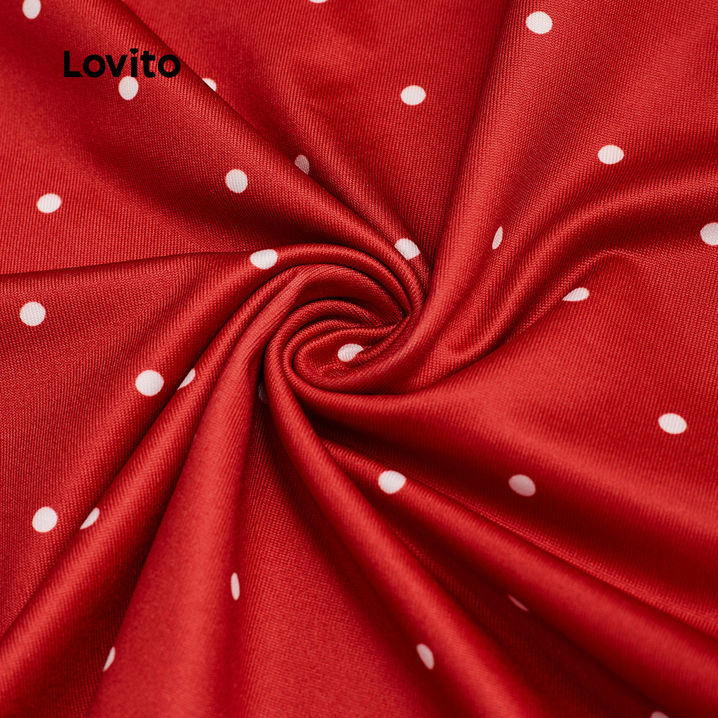 Lovito Camiseta Casual Feminina Vermelha com Cadarço para Festa de Natal Primavera Verão L156AD029
