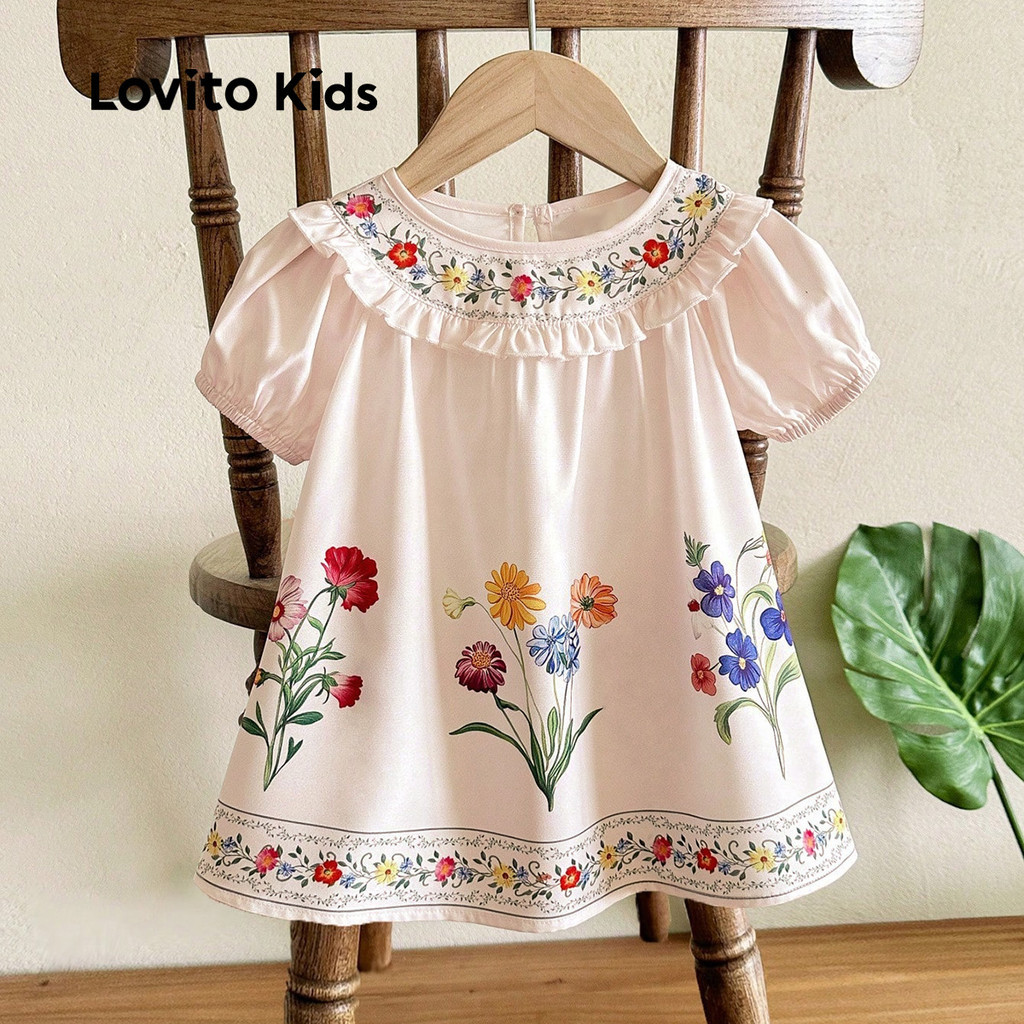 Lovito Vestido Infantil Delicado com Babados para Verão Menina L162LD221