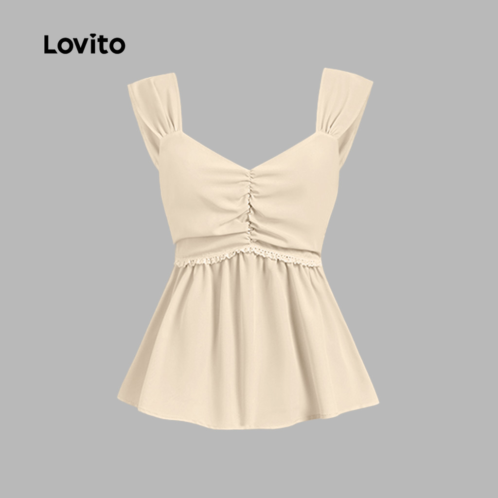 Lovito Blusa Feminina Casual Primavera Verão com Babados Rosa Pêssego L157ED498