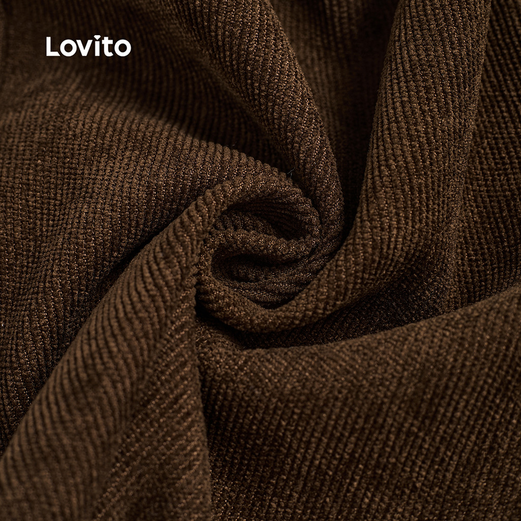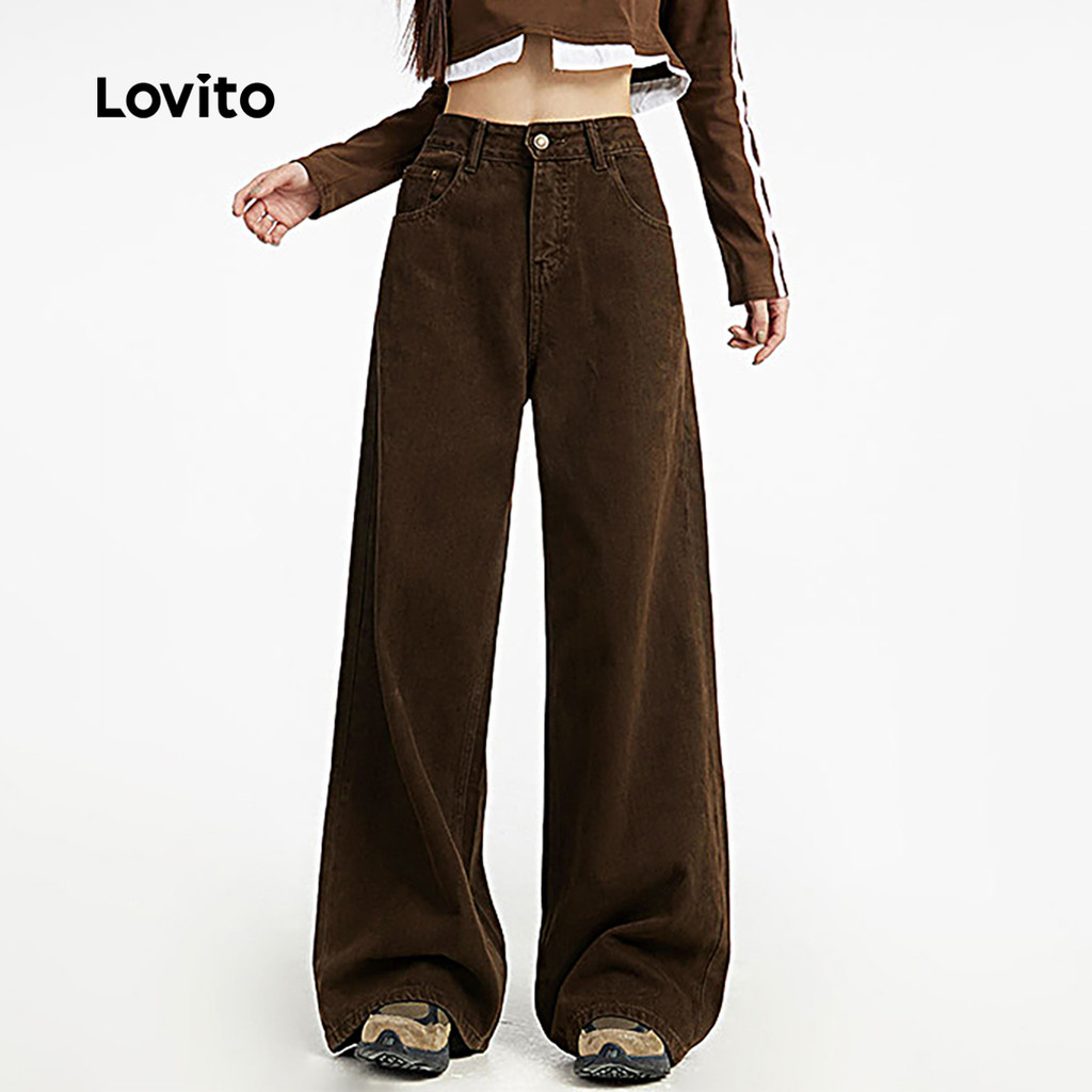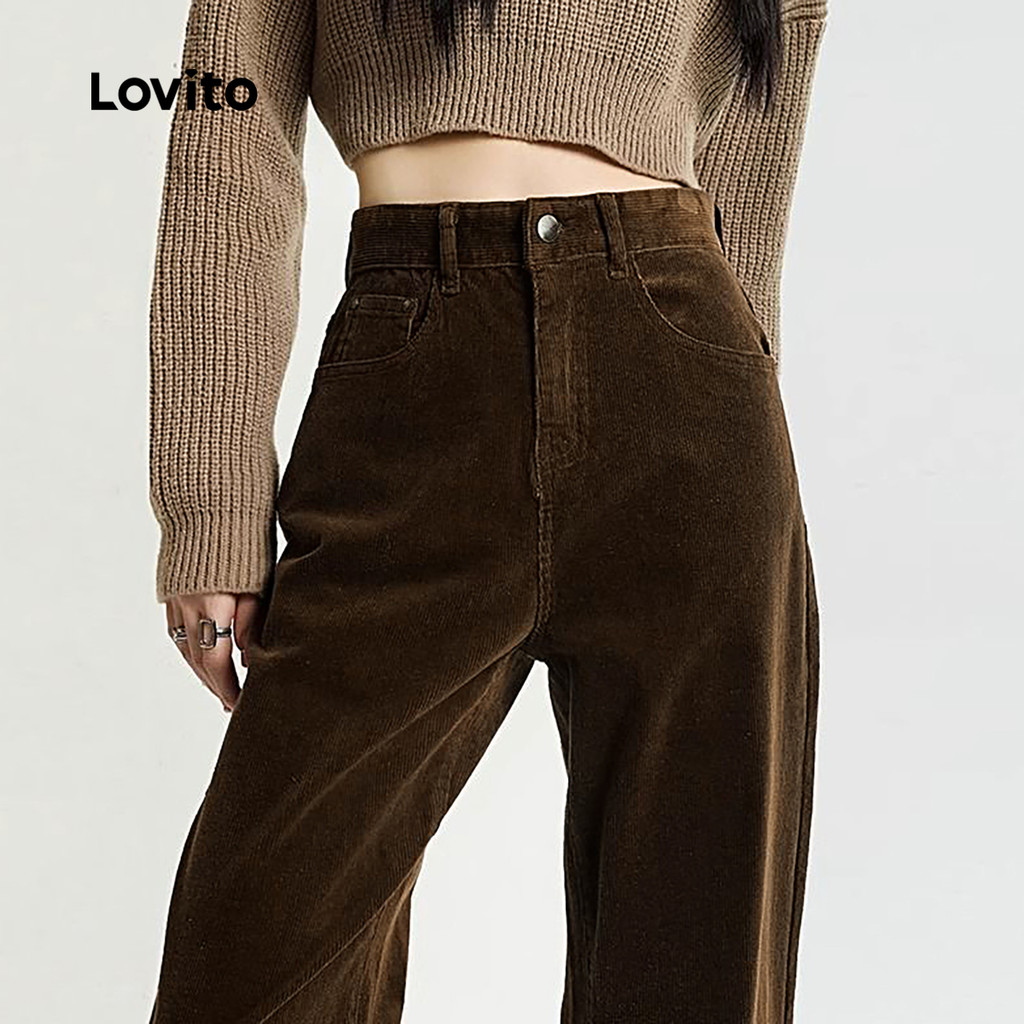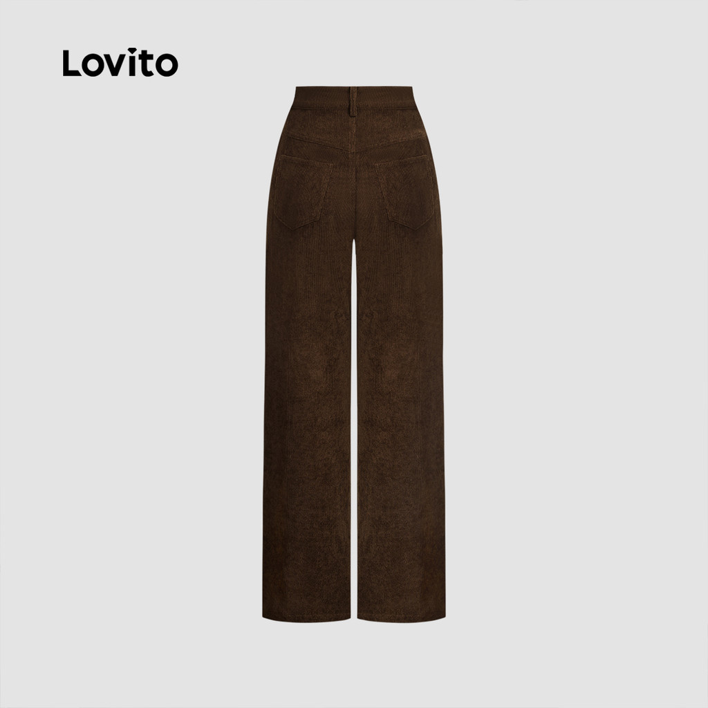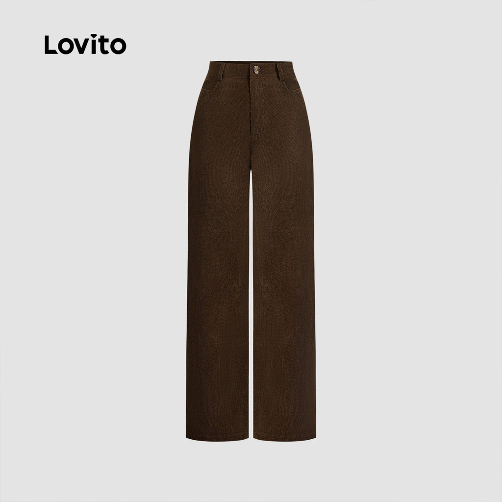 Lovito Calças Femininas Casuais com Zíper e Bolso Primavera Verão Marrom LBL26273