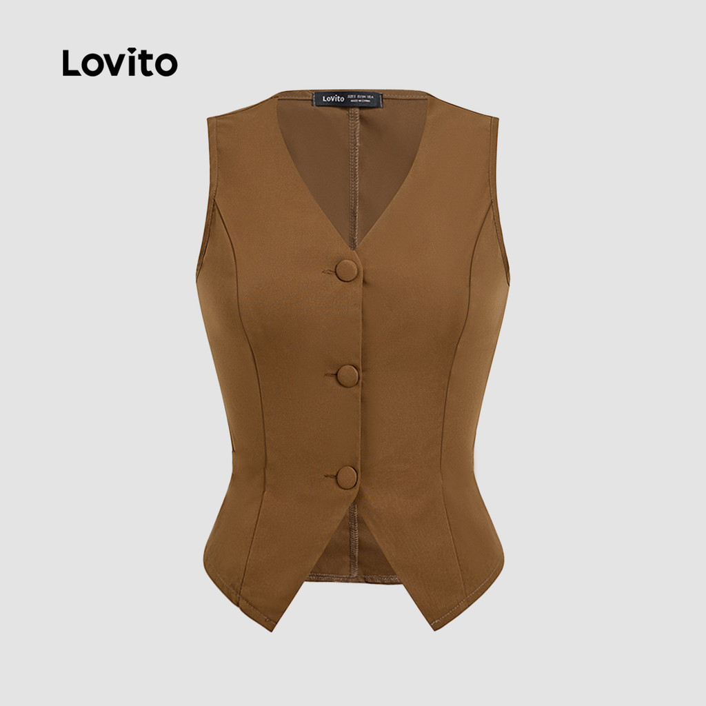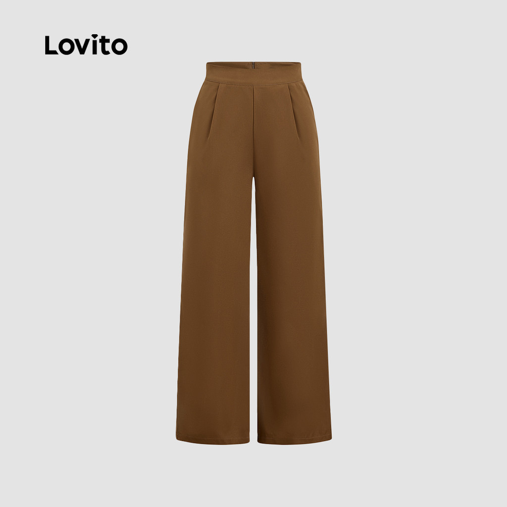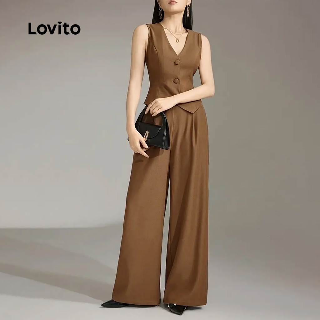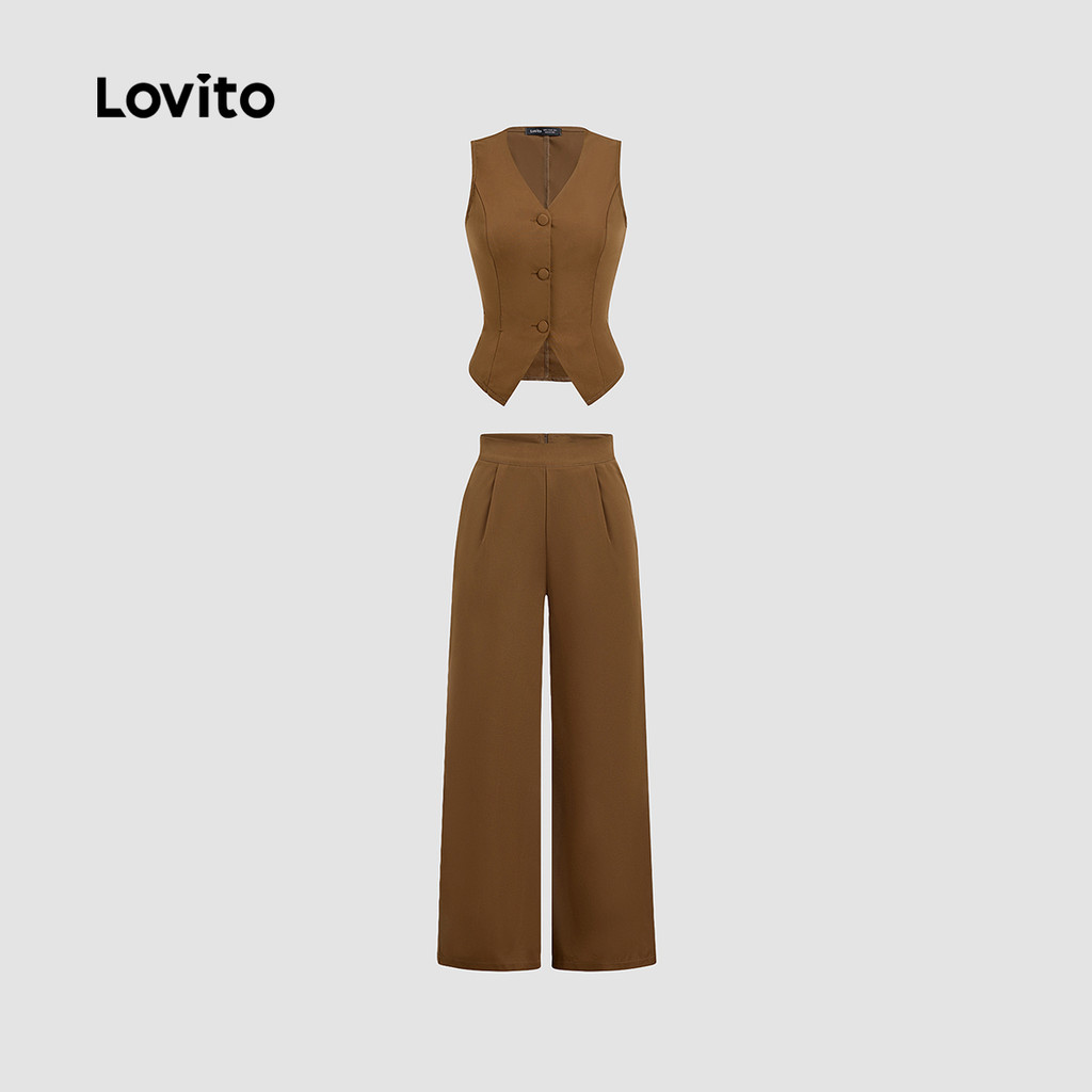 Lovito Tops ou Bottoms Elegantes com Textura para Mulheres Terno Marrom primavera/verão L166AD051