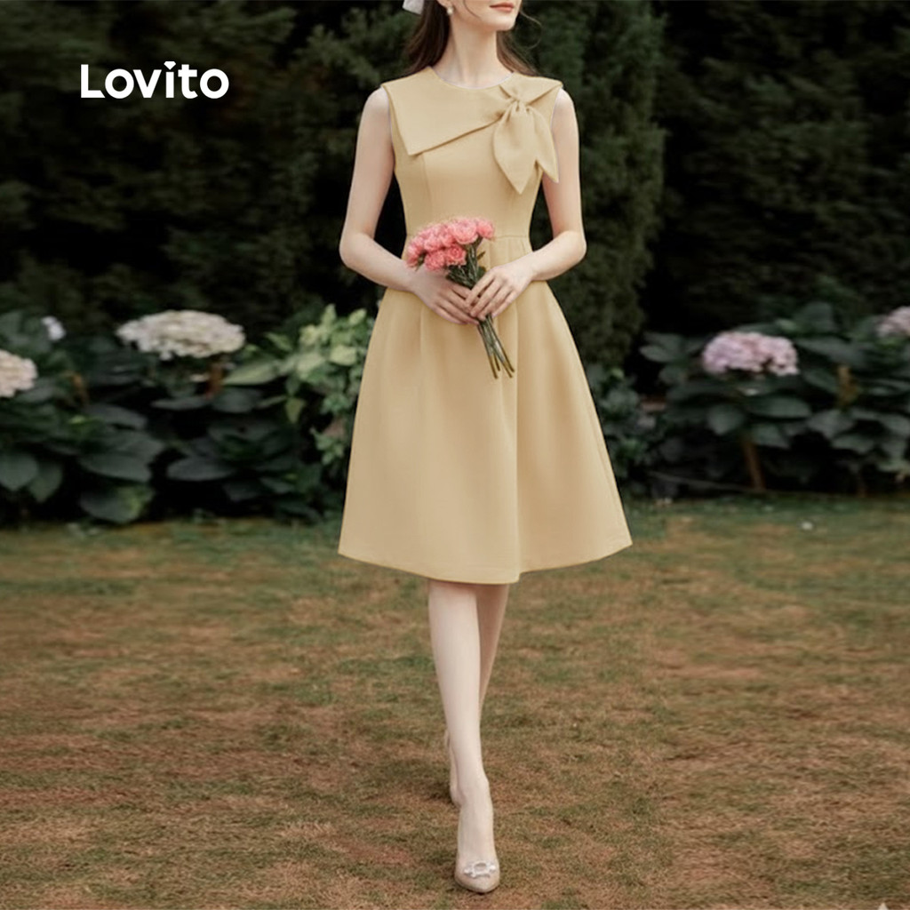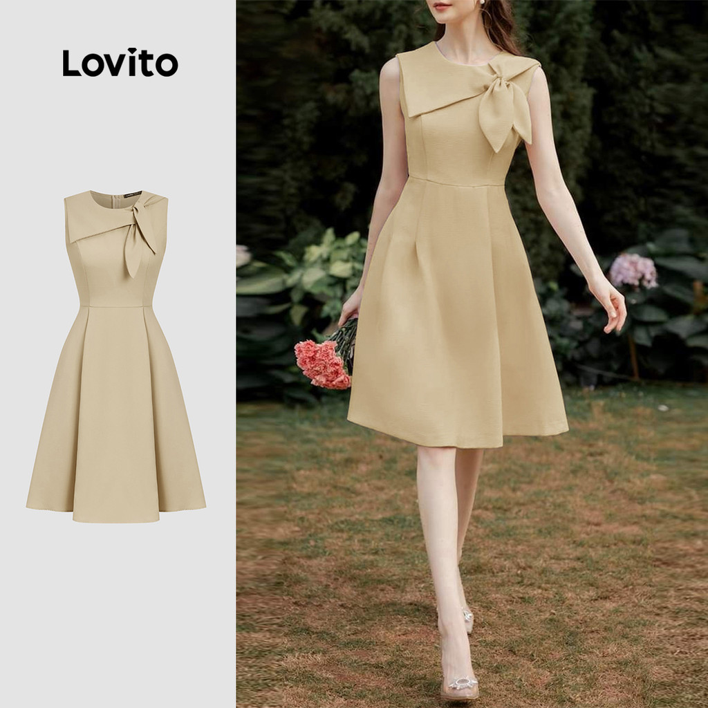 Lovito Vestido Elegante Assimétrico com Laço Primavera/verão Vestido Khaki para Mulheres L171ED100