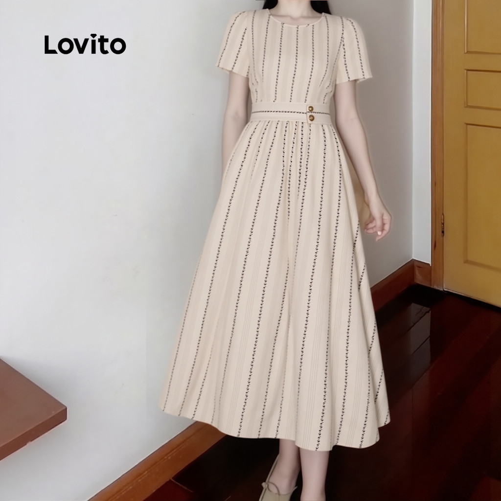 Lovito Vestido Casual Listrado Com Botões Cor Damasco Para Primavera/verão Feminino L158ED395