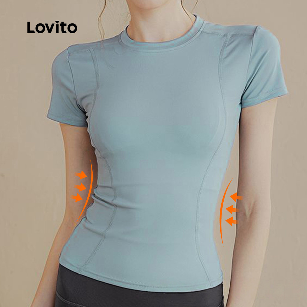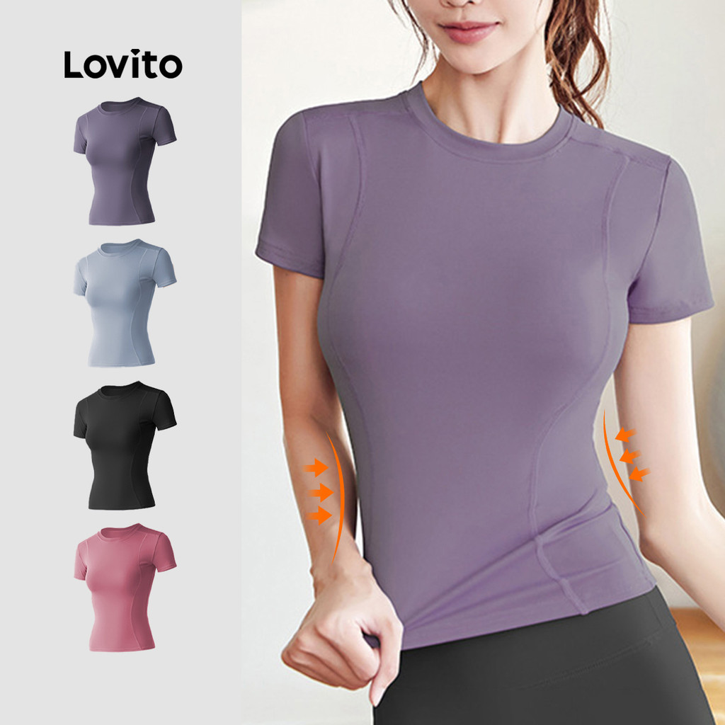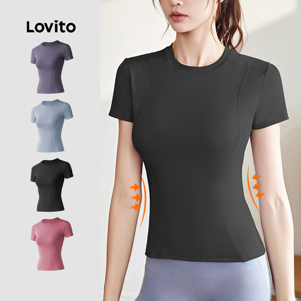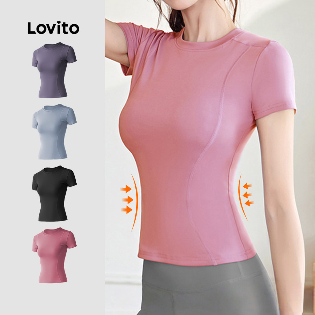 Lovito Camiseta Esportiva Esportiva Yoga Gola Redonda Academia Camisa Dri Fit Corrida Roupa de Treino LNA133023
