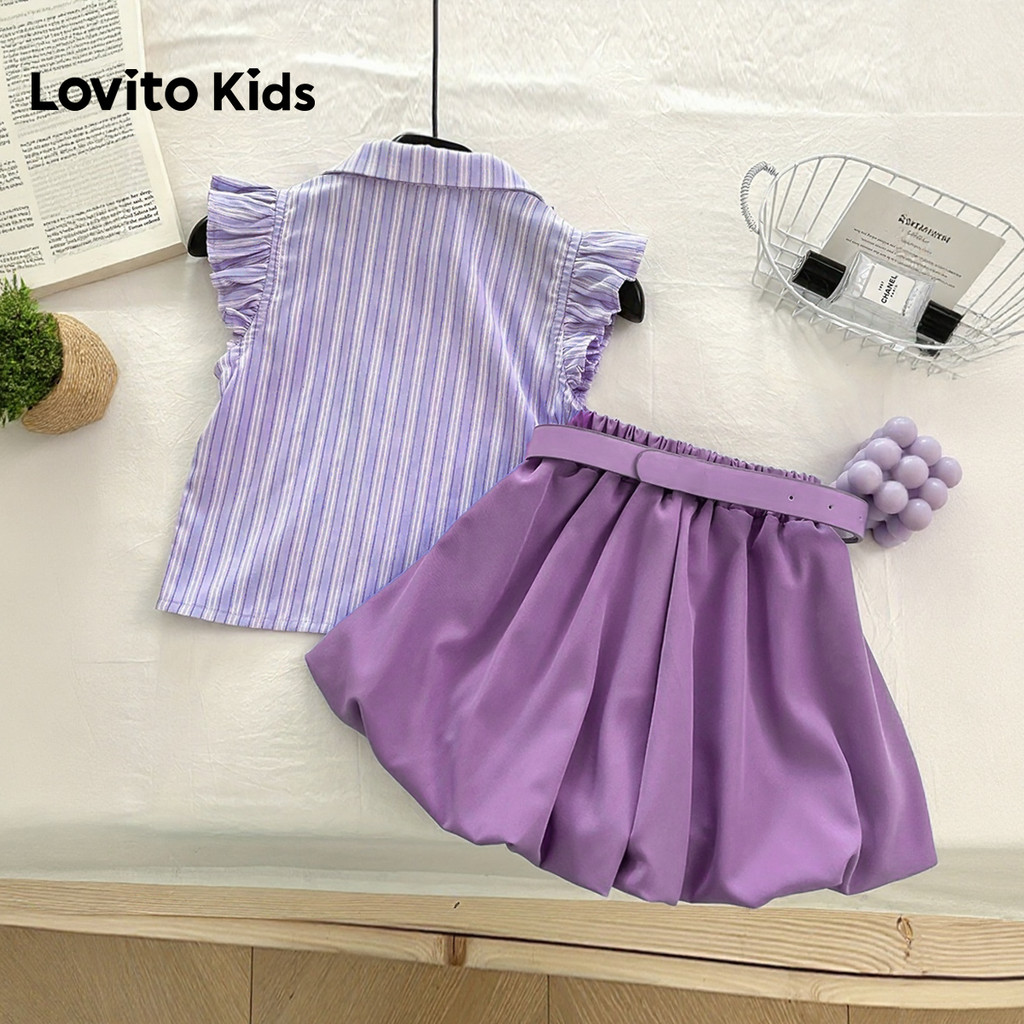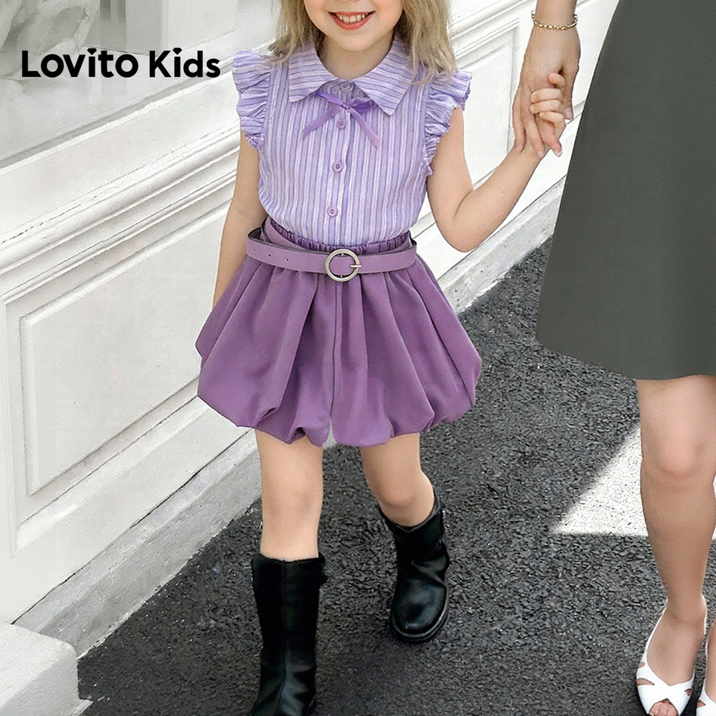 Lovito Kids Babados Laço Botão Primavera/verão Conjuntos de Shorts Roxos para Menina L174LD165