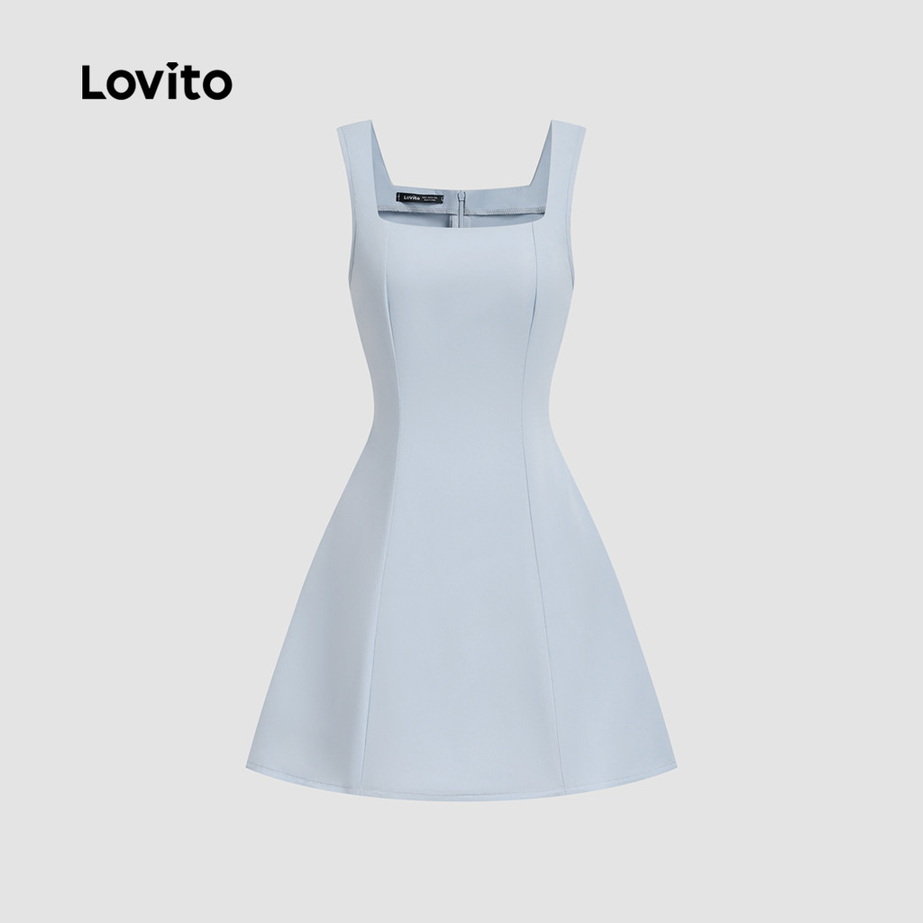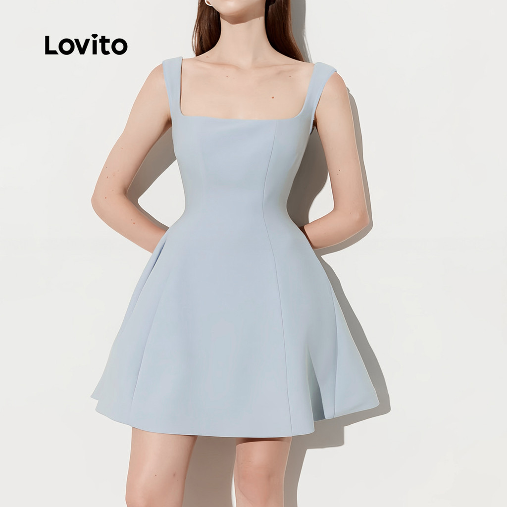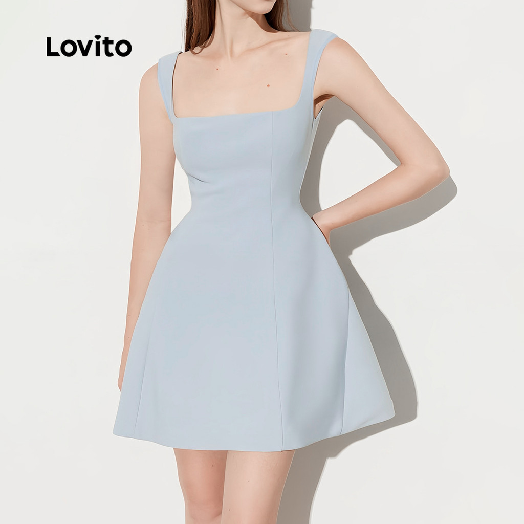 Lovito Vestido Feminino Azul Refinado para Primavera e Verão L139AD261