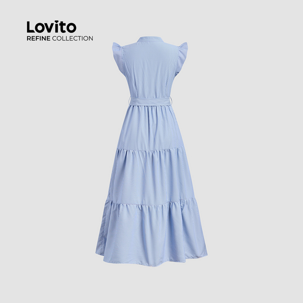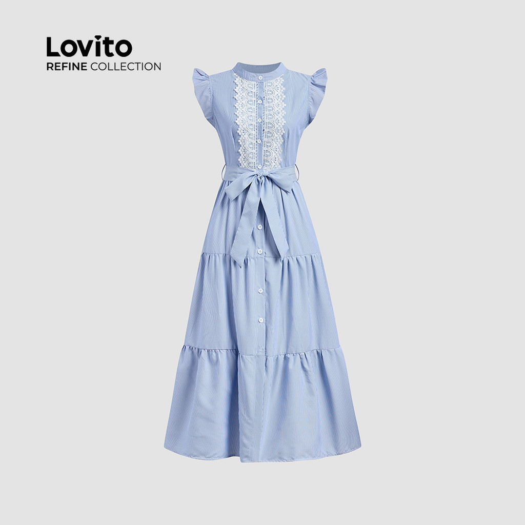(Lovito Refine) Vestido Elegante em Camadas com Costura de Tecido para Primavera/verão Vestido azul LR23L225