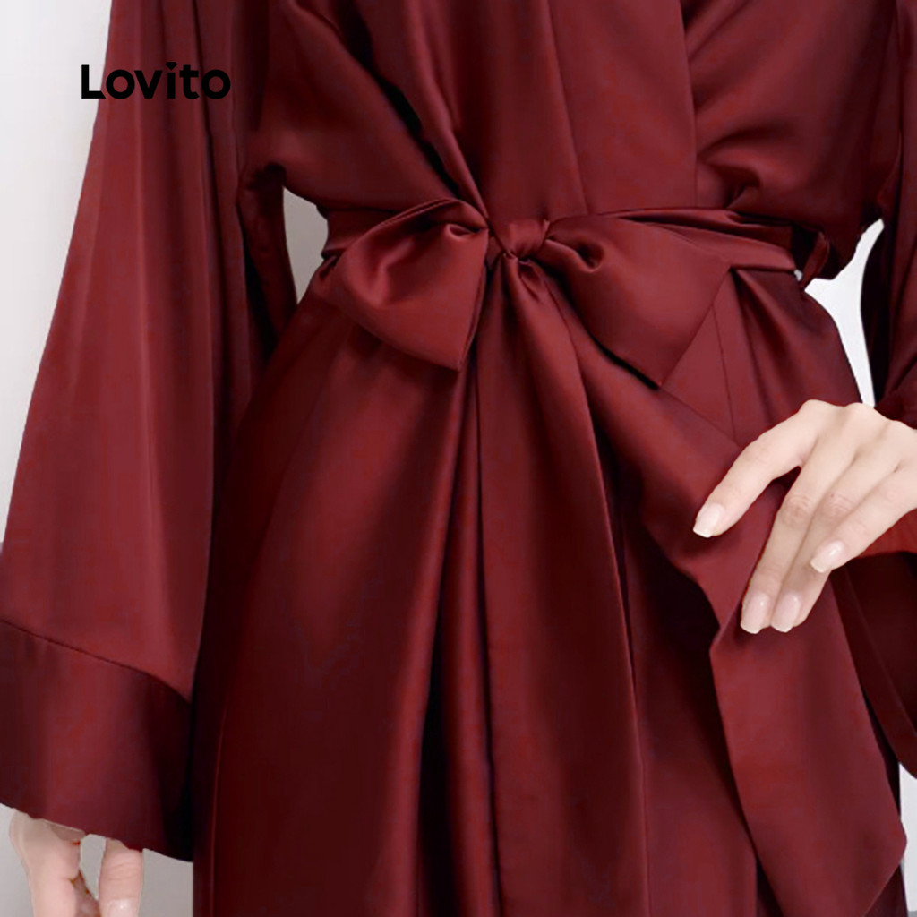 Lovito Conjunto Sofisticado De Robes Longos De Seda Com Cinto E Detalhes Em Renda Para Mulheres LNE126101