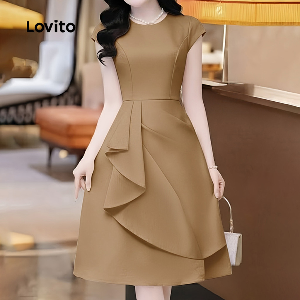 Lovito Vestido Elegante De Festa Casamento Plissado E Assimétrico Cor Cáqui Para Primavera/verão Para Mulheres L164ED208