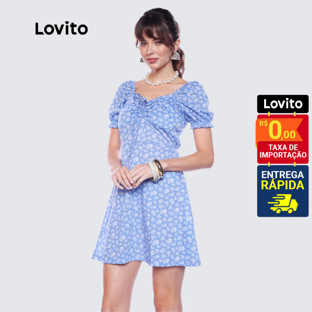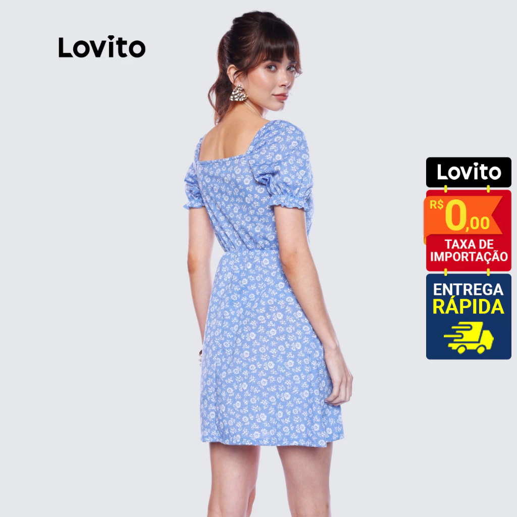 Lovito Vestido Curto Manga Curta Moda Casual Floral Para Mulheres LB1142BRL1172