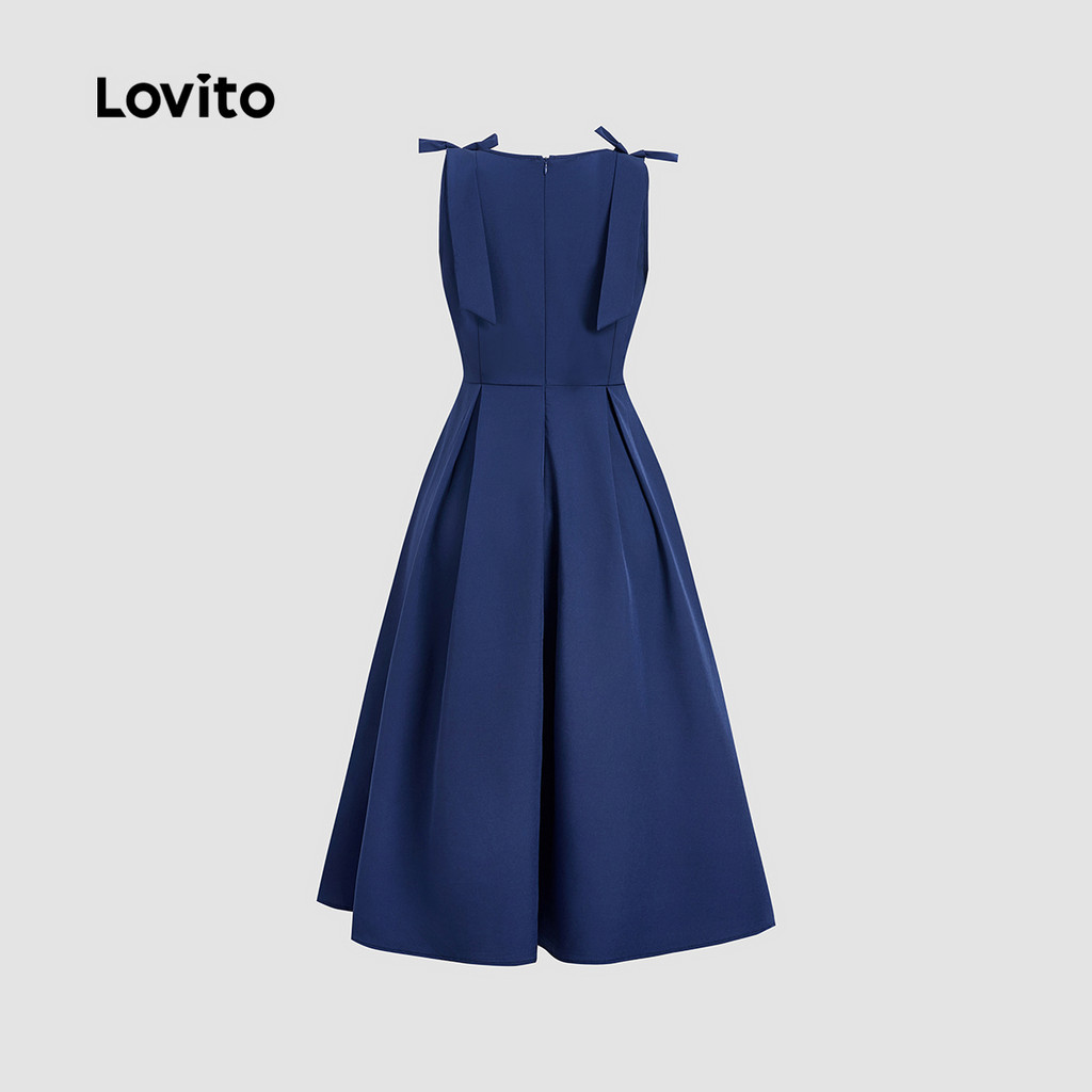 Lovito Refine Vestido Feminino Azul Marinho com Laço para Primavera/verão LBL31026