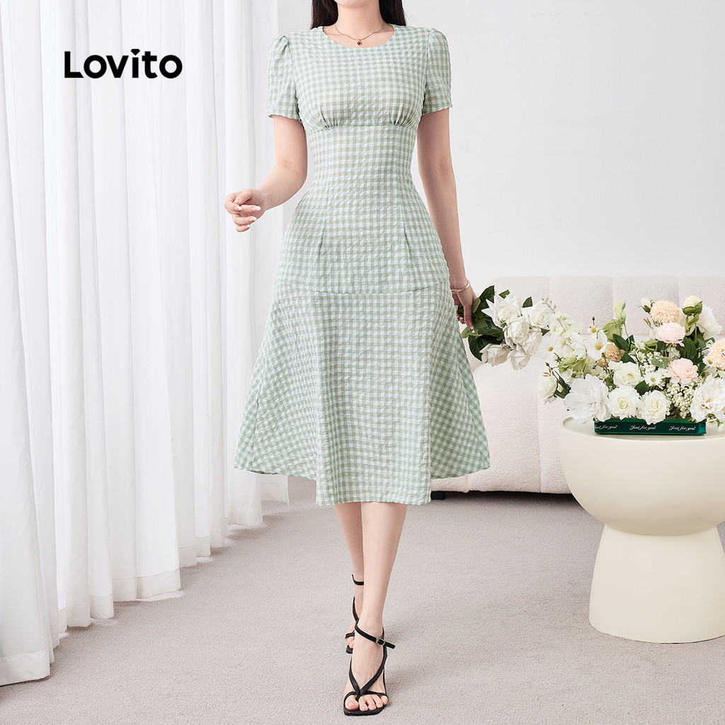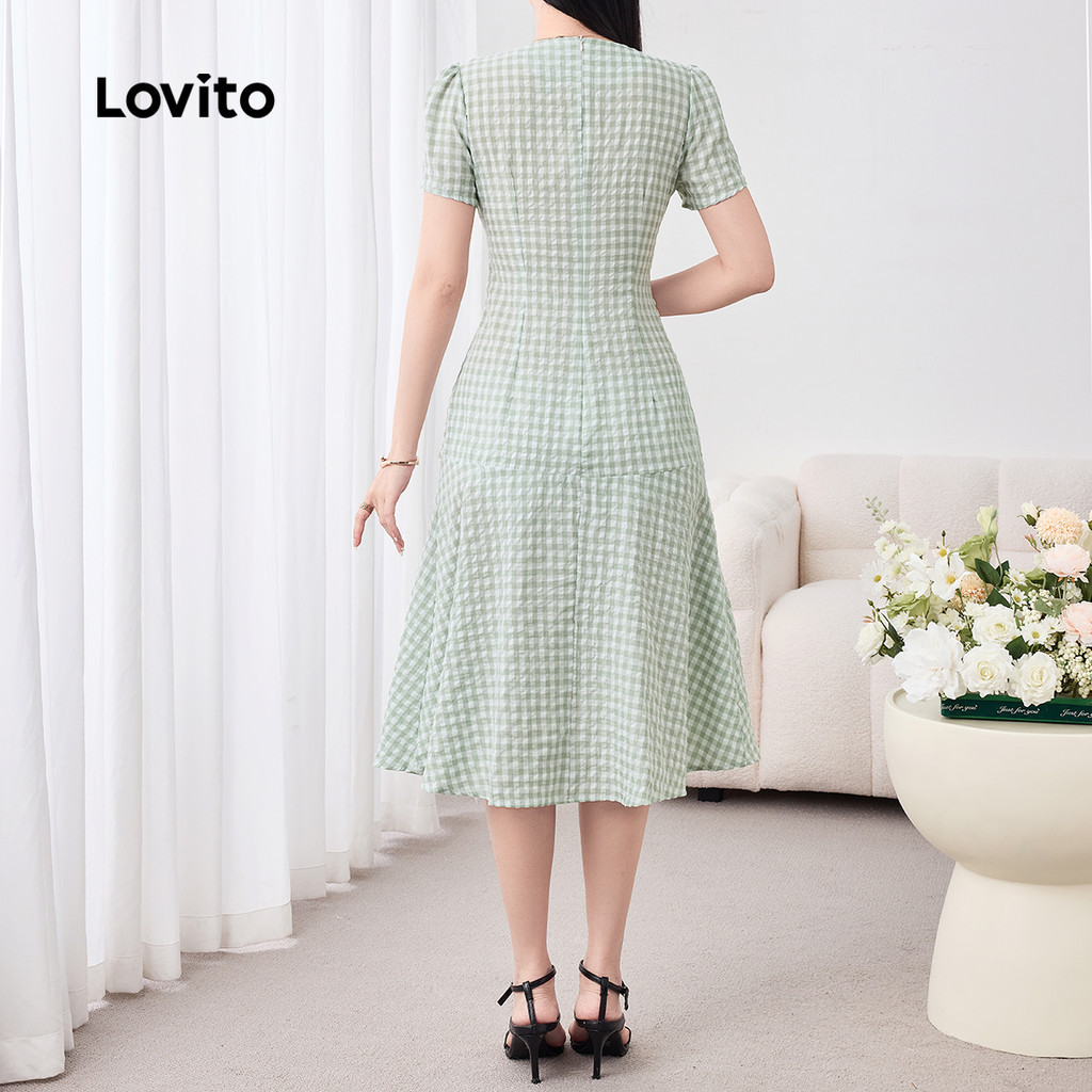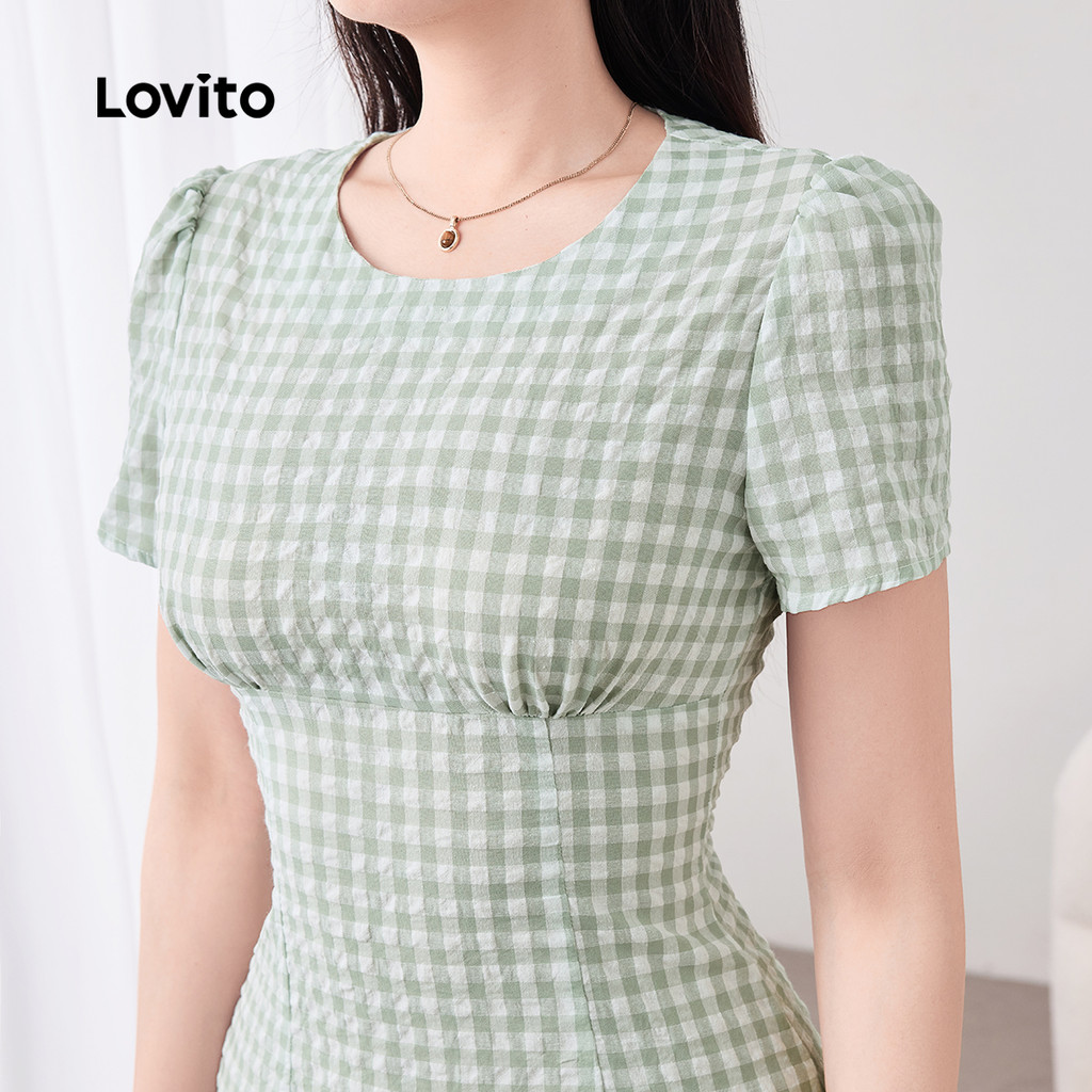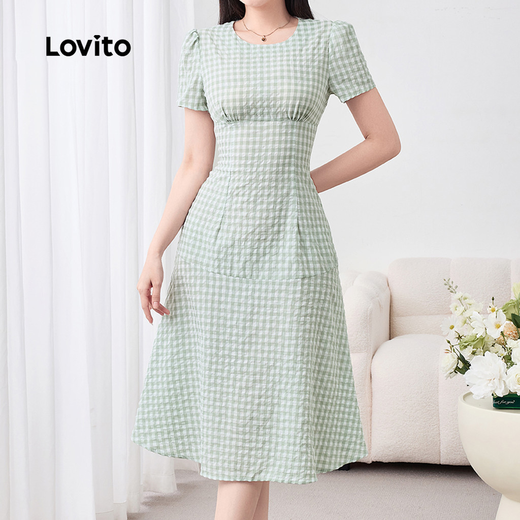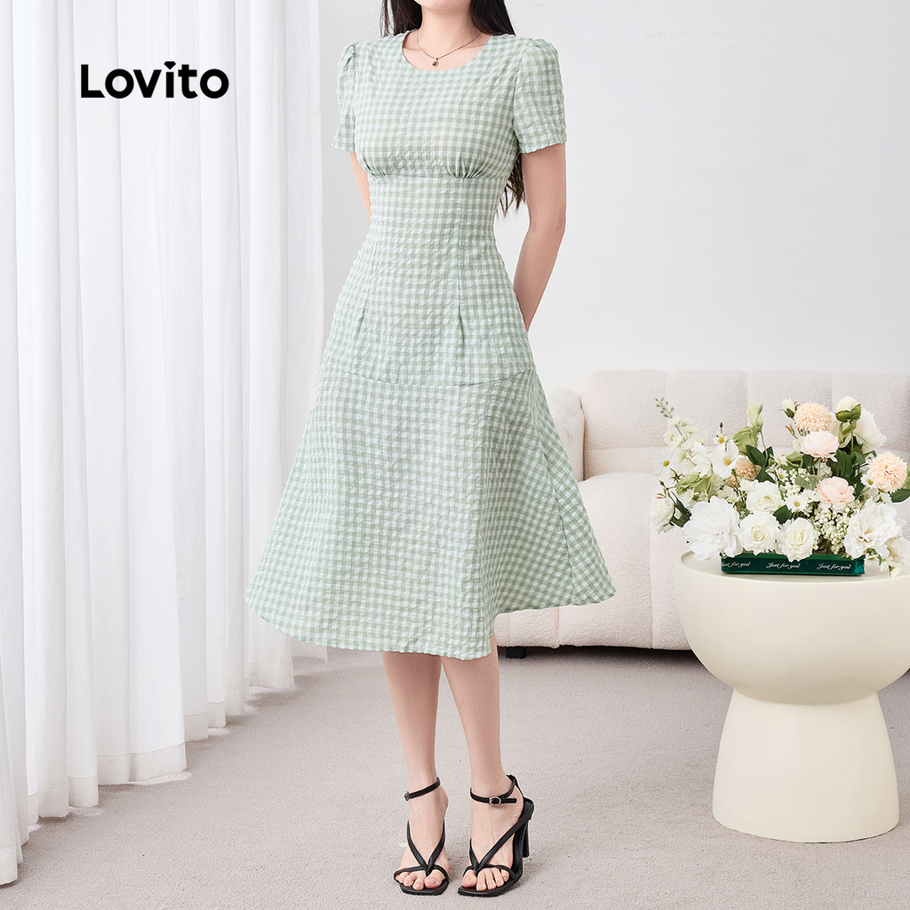 Lovito Vestido Elegante Casual com Franzido Primavera/verão Vestido Verde para mulheres L158ED1521
