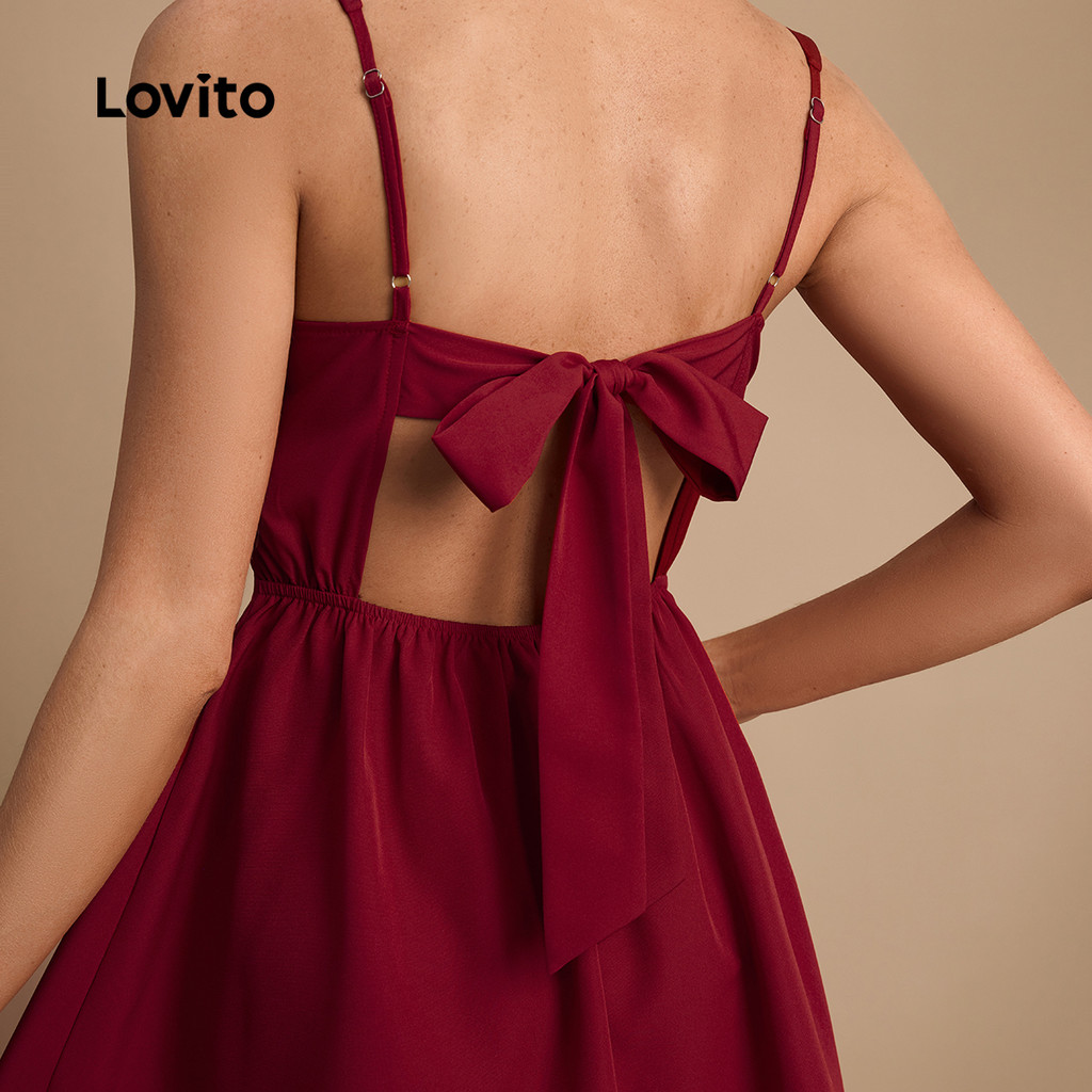 Lovito Vestido Elegante Festa Amarração Nas Costas E Decote Em V Vermelho Primavera/verão Para Mulheres LBL30259