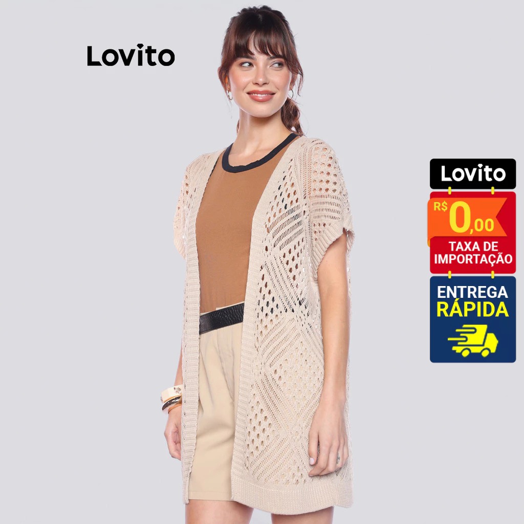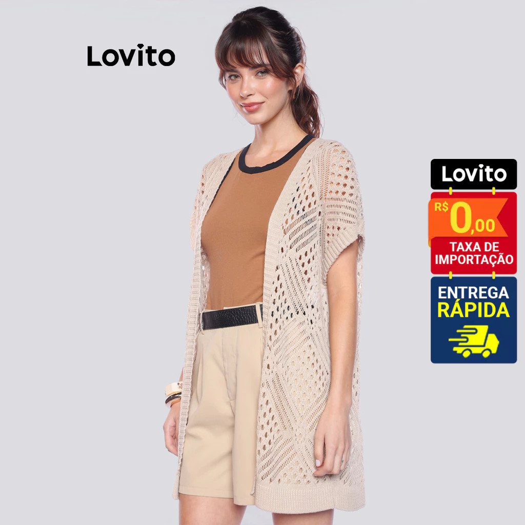 Lovito Cardigã Verao Manga Curta Boho Basico Casual Liso Feminino LB537BRL567