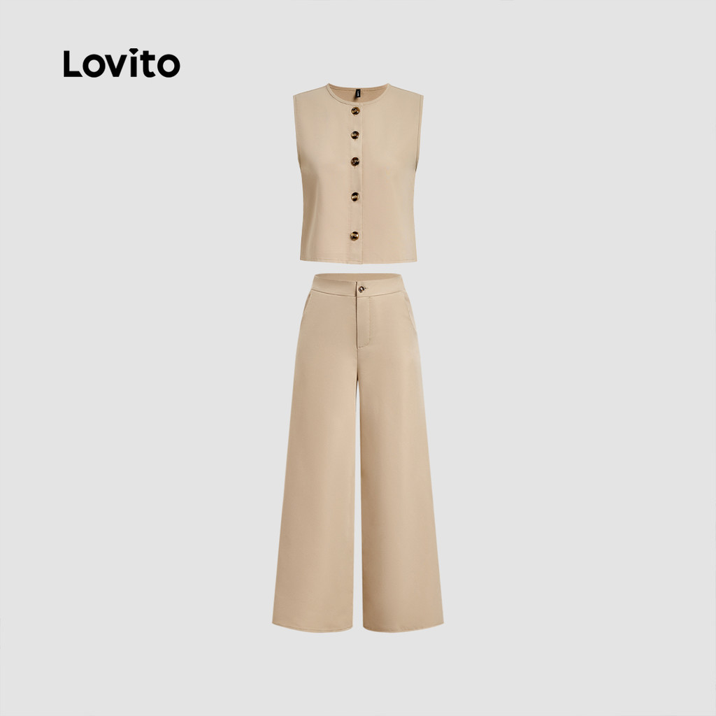 Lovito Conjunto Elegante Casual Blusa E Calça Feminina Primavera/verão LBL29191
