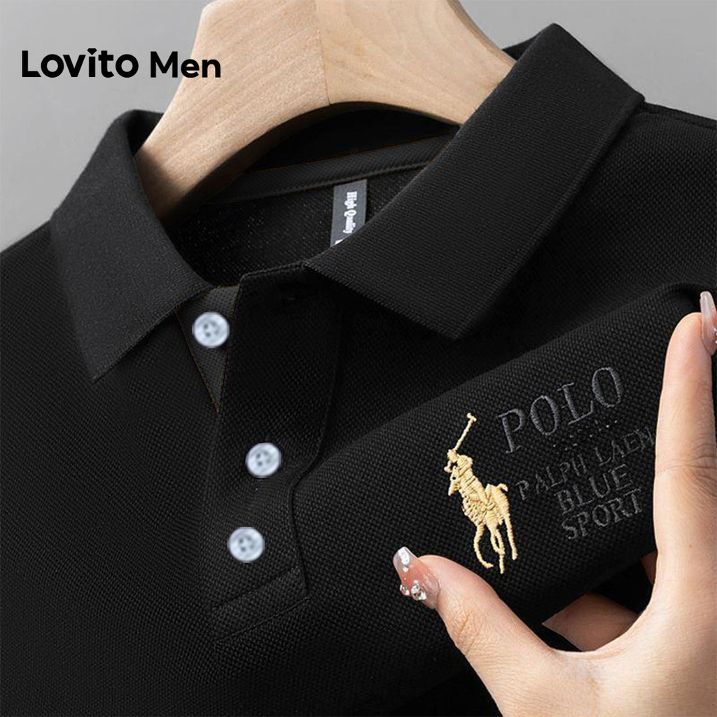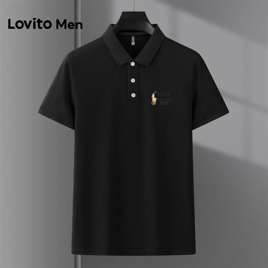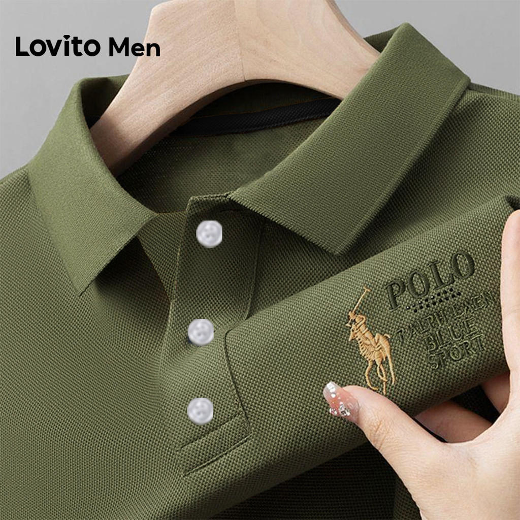 Lovito Men Camisa Polo Casual Bordada Primavera/verão Verde Camisa Polo para Homens LNE131066
