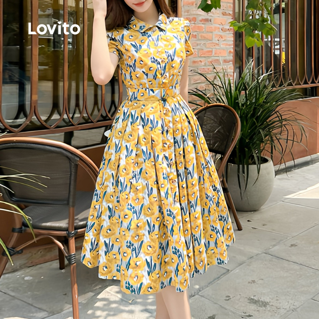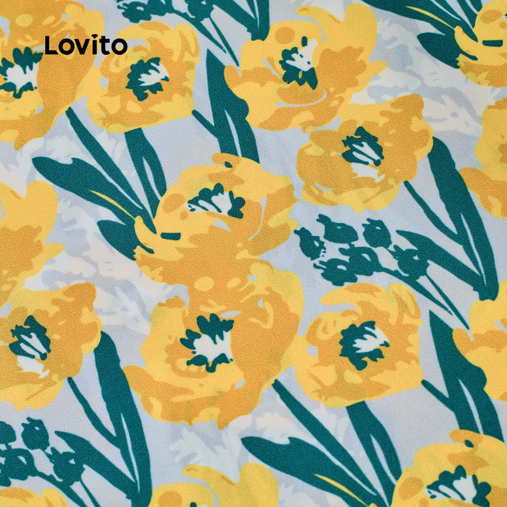 Lovito Refine Vestido Floral com Pregas para Mulheres Primavera Verão L158ED1074