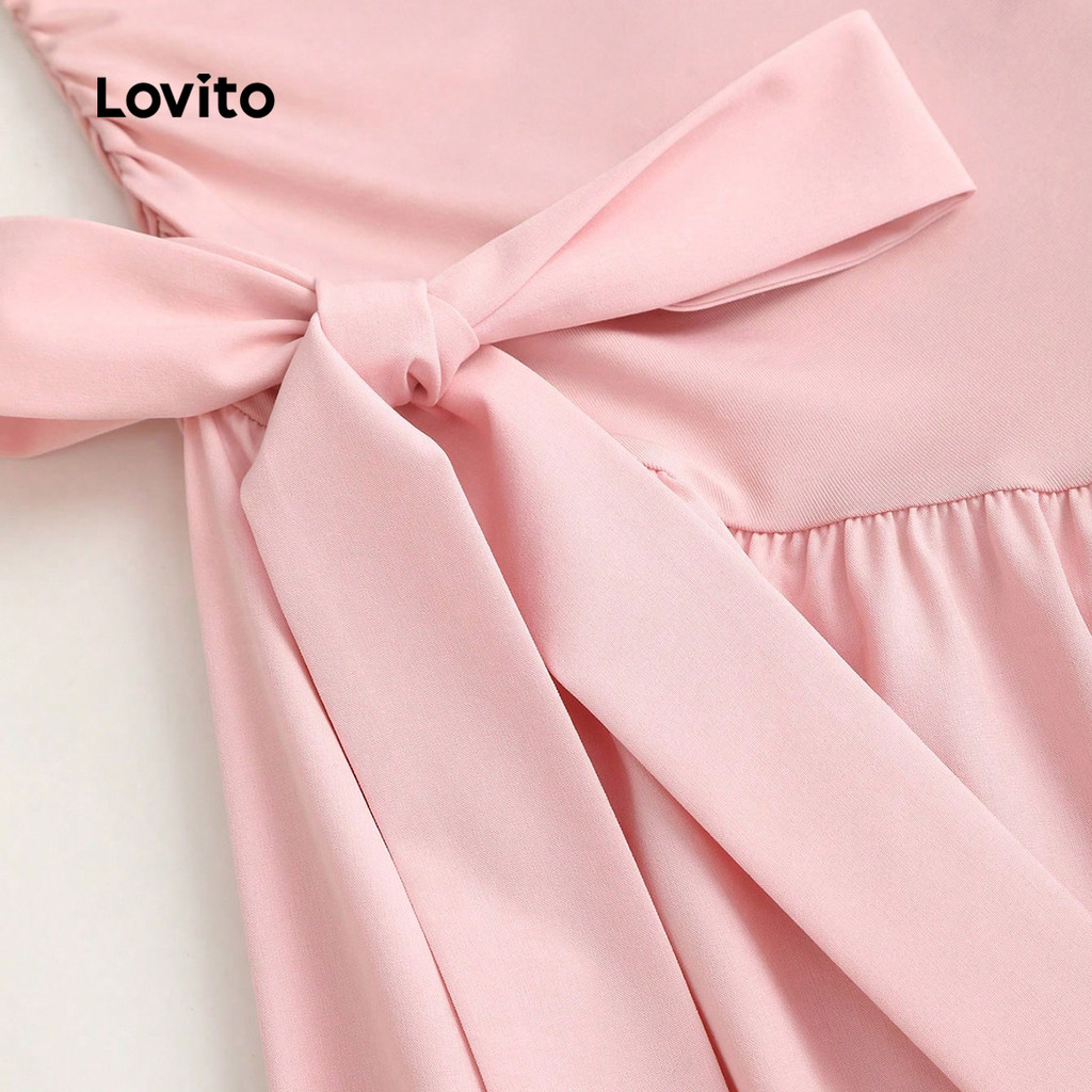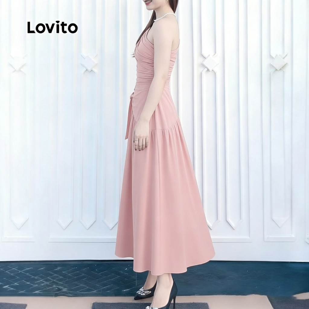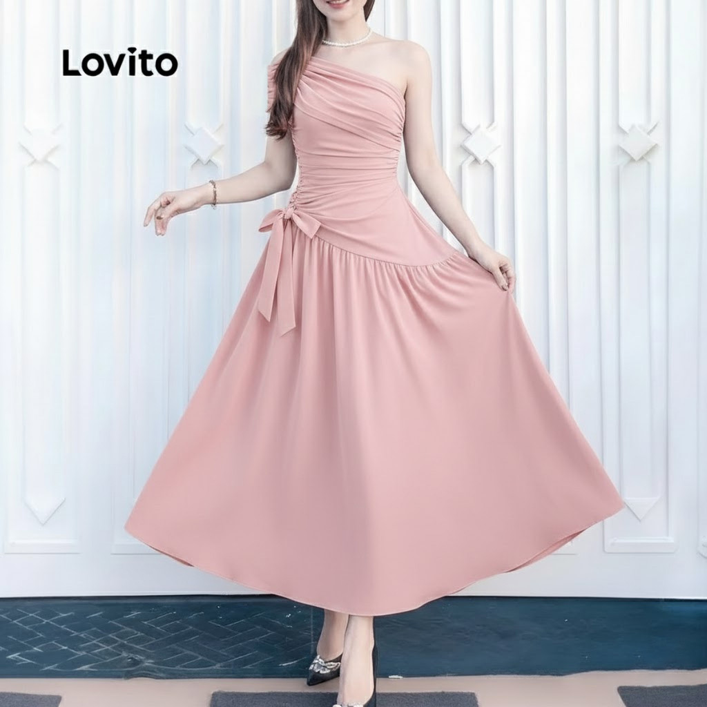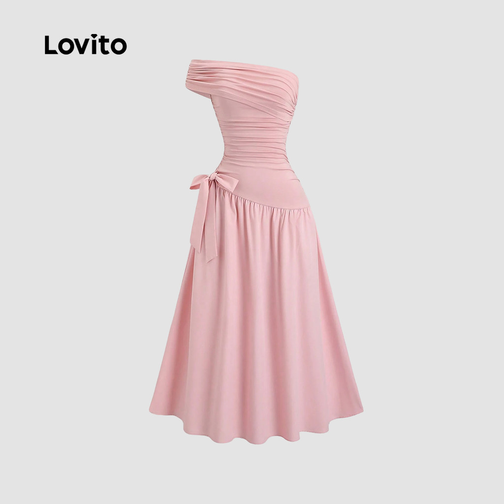 Lovito Vestido elegante com zíper e deslocamento para primavera/verão vestido rosa para mulheres LK3ED608