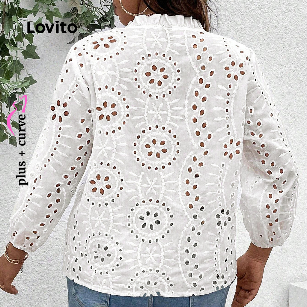 Lovito Blusa Boho Plus Size Feminina Com Bordados E Botões Para Verão Primavera LBL22272