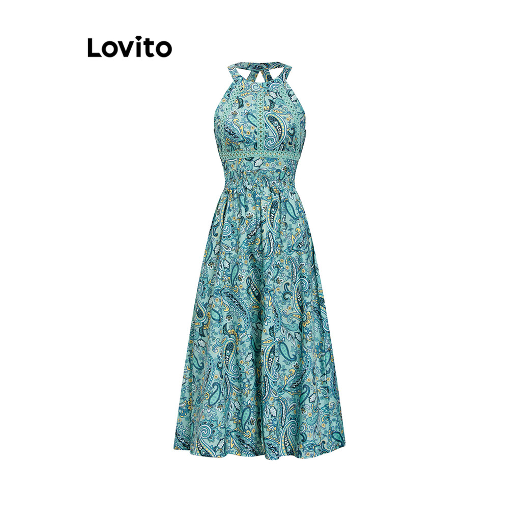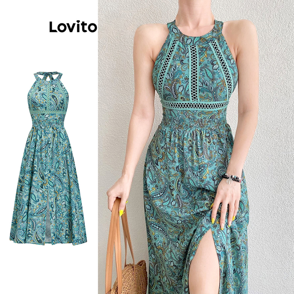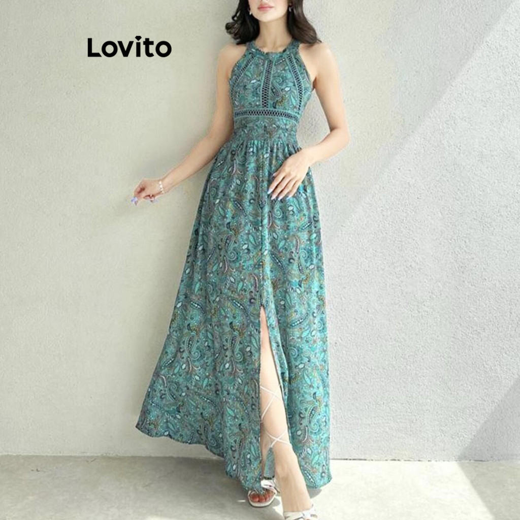 Lovito Refine Vestido Feminino Estampado Geométrico com Fenda Frontal para Verão e Primavera L105MD559