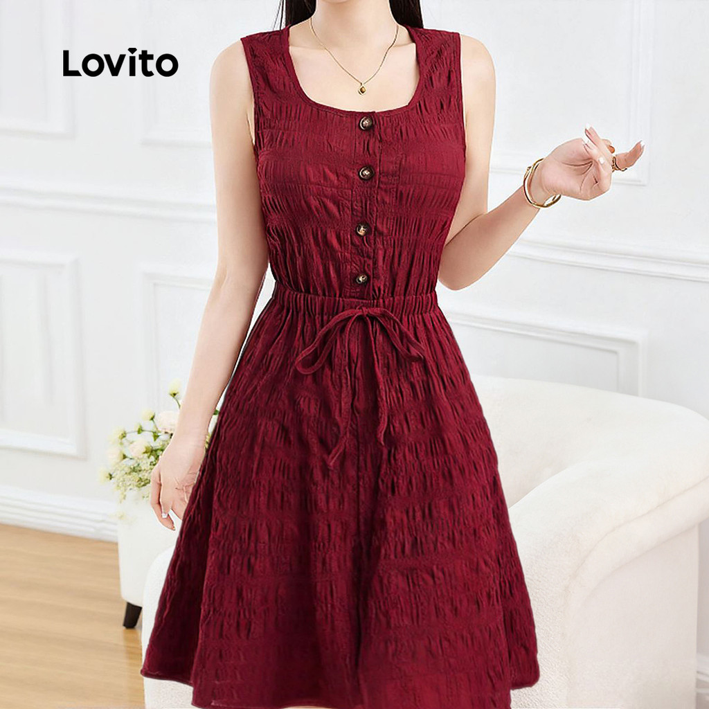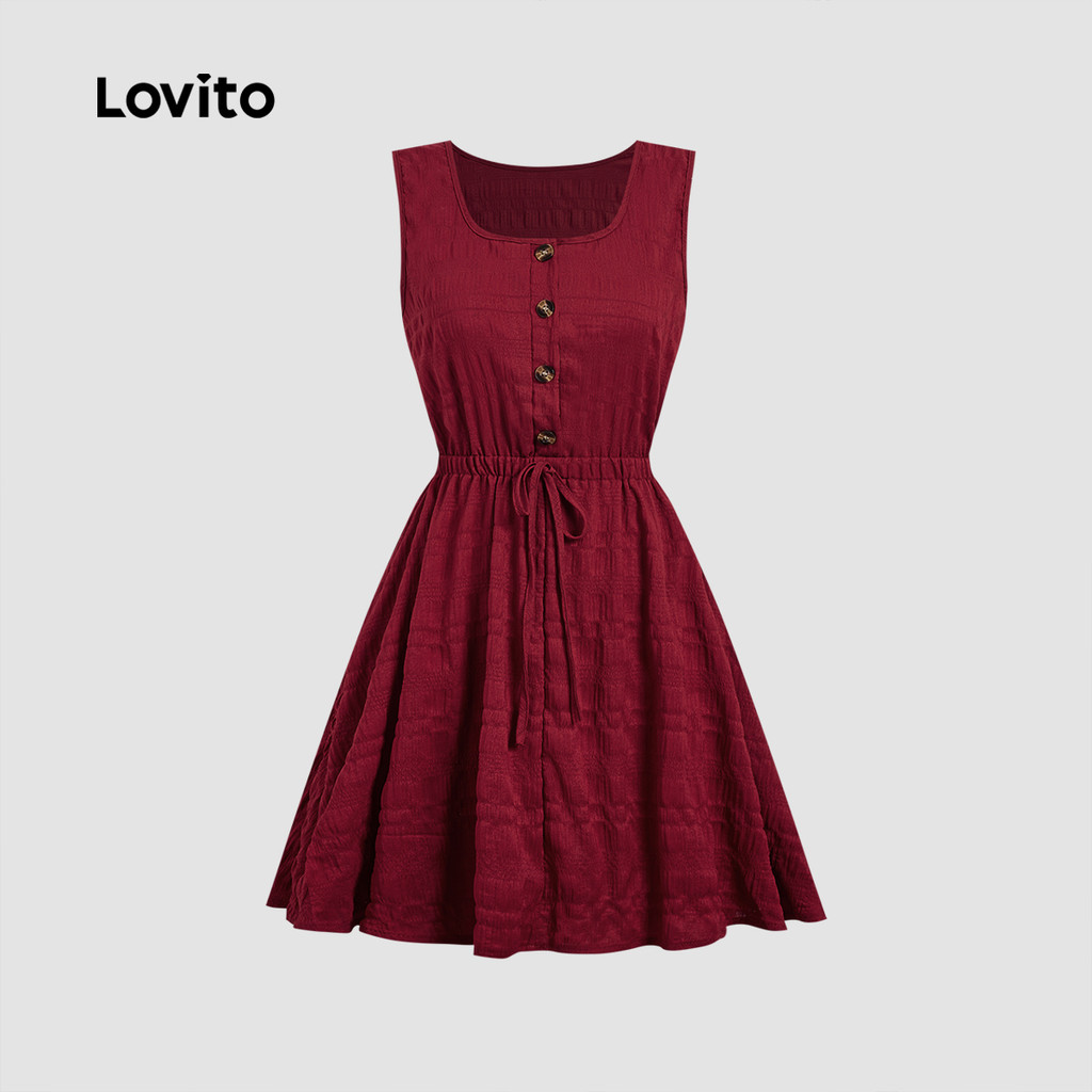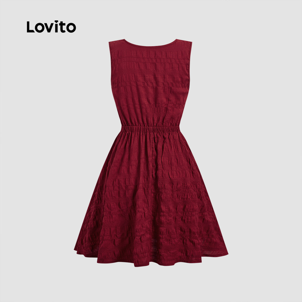Lovito Vestido Elegante De Festa Vermelho Casual Com Amarração Nas Costas Modelo Bordô Para Primavera/verão L165ED274
