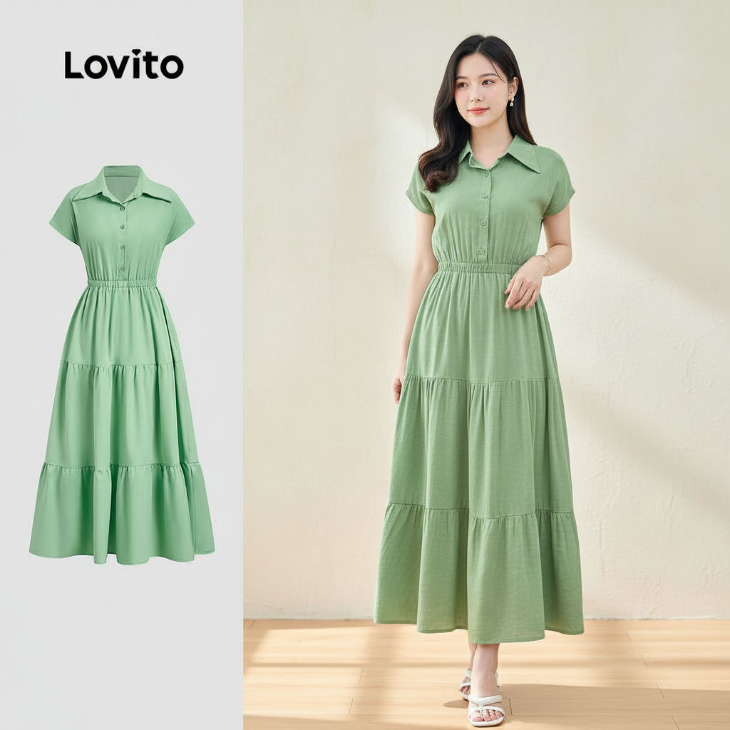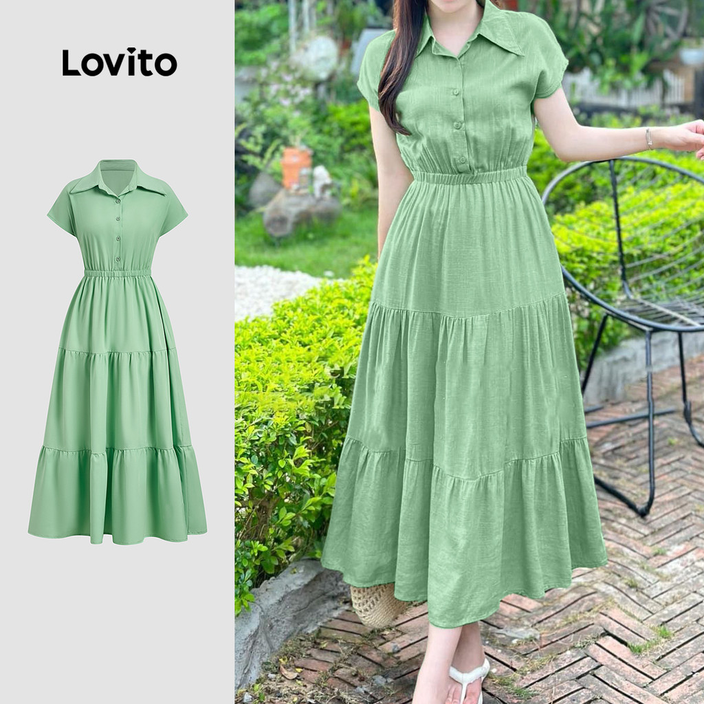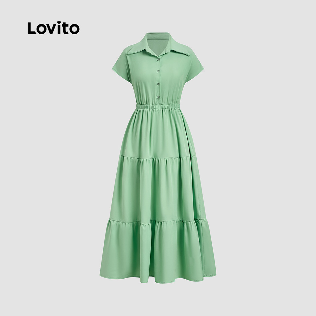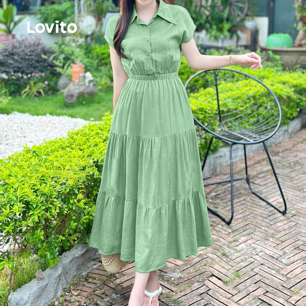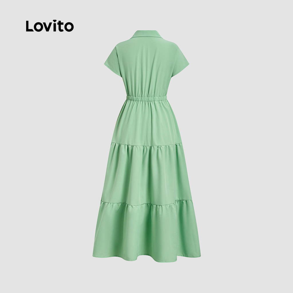 Lovito Refine Vestido Feminino com Botões em Verde para Primavera/Verão L157LD279