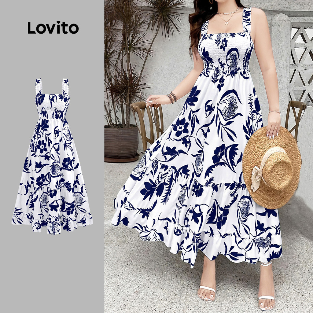 Lovito Vestido Estilo Boho com Estampa Floral, Modelagem para Lazer, Primavera/Verão L155ED026
