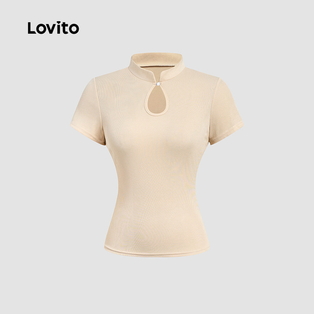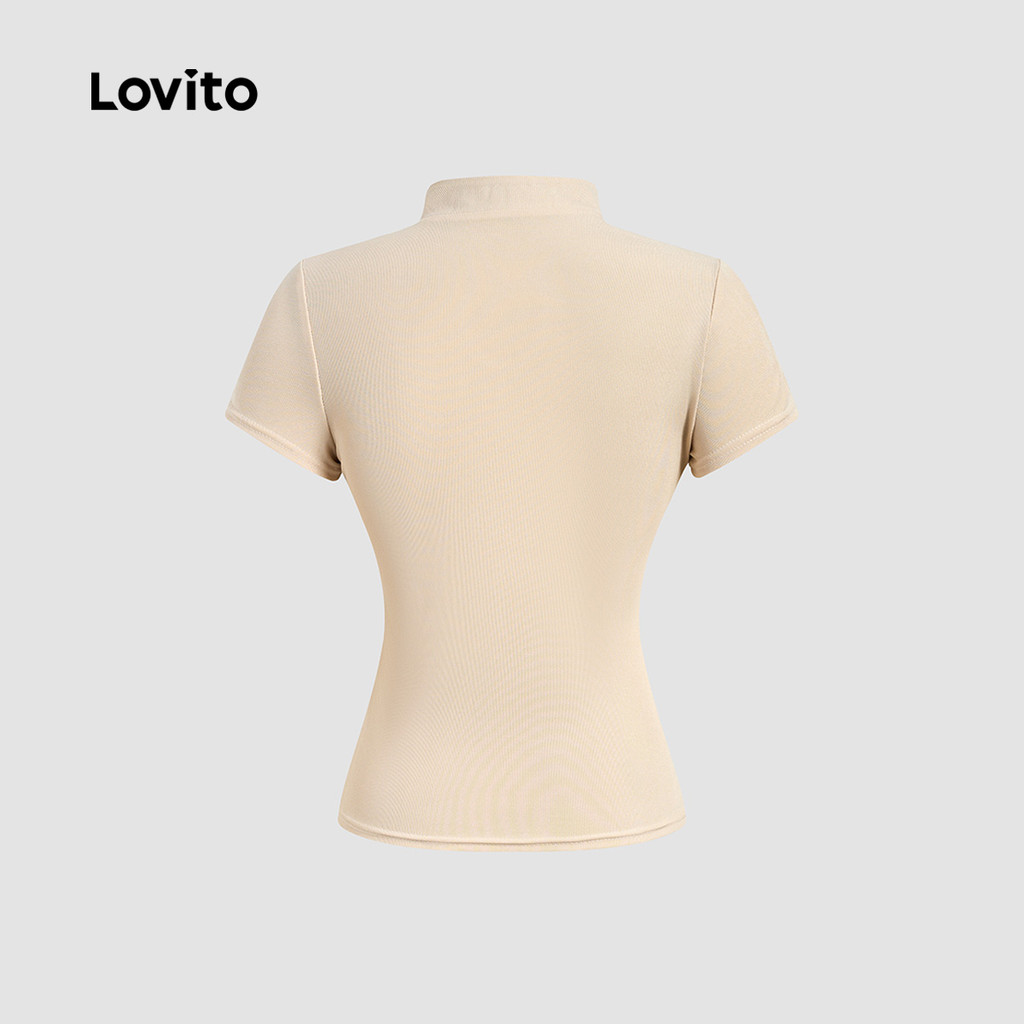 Lovito Blusa Sofisticada com Estampa Oriental Cheongsam Qipao Primavera/verão Damasco Feminina L157LD335