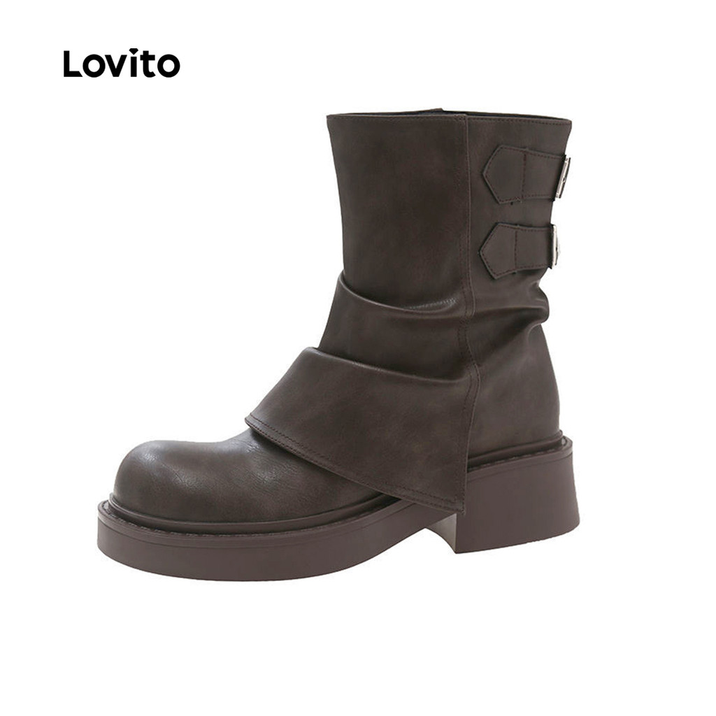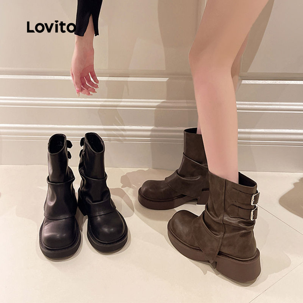 Lovito Botas Casuais com Fivela de Metal para mulheres LFA103036