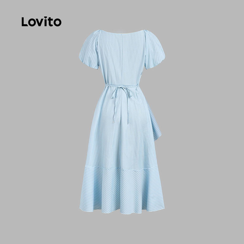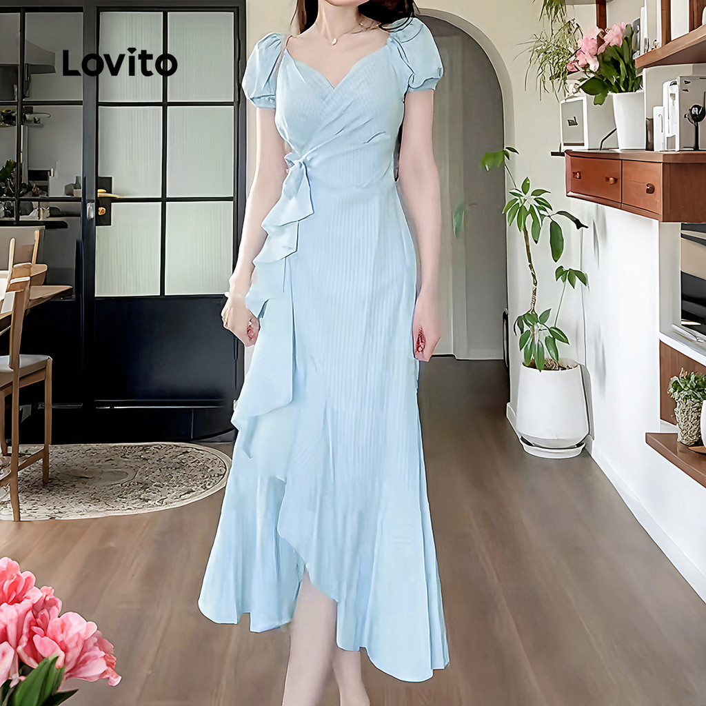 Lovito Vestido Elegante Envelope com Babado Primavera/verão Azul para Mulheres L165ED1507