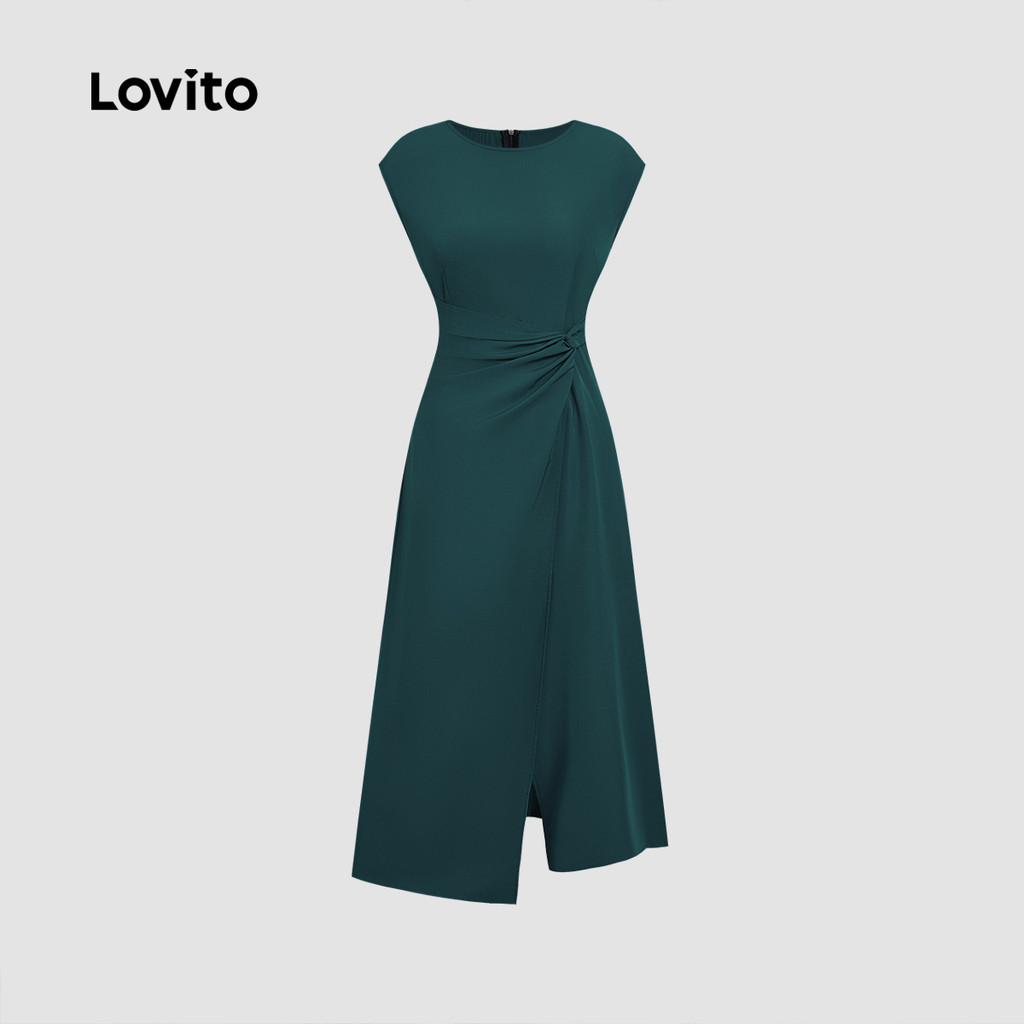 Lovito Vestido Elegante Vestido Assimétrico Primavera/verão Verde para Mulheres L164LD051