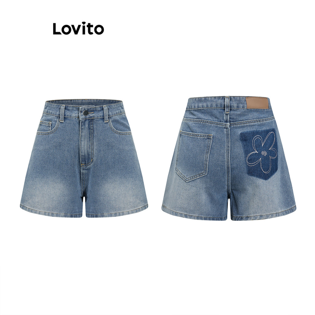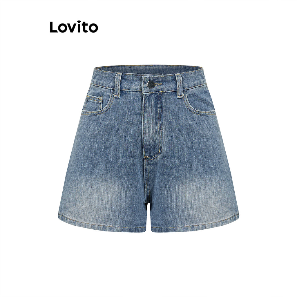 Lovito Shorts Jeans Casuais com Botões Simples para Mulheres L82AD168 (Multicolorido)