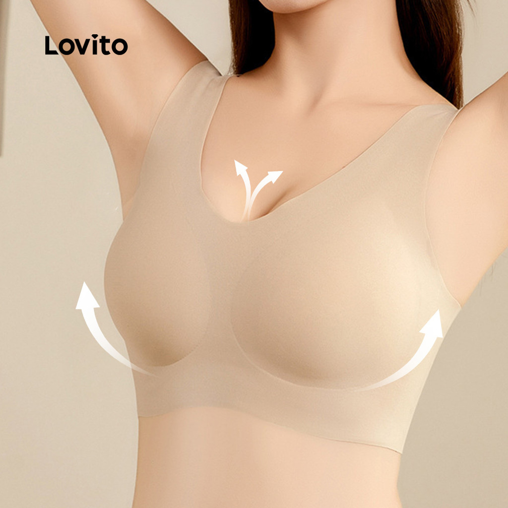Lovito Bralette Ajustável Sem Aro Macio Push Up Anti-Queda para Mulheres LNE121087