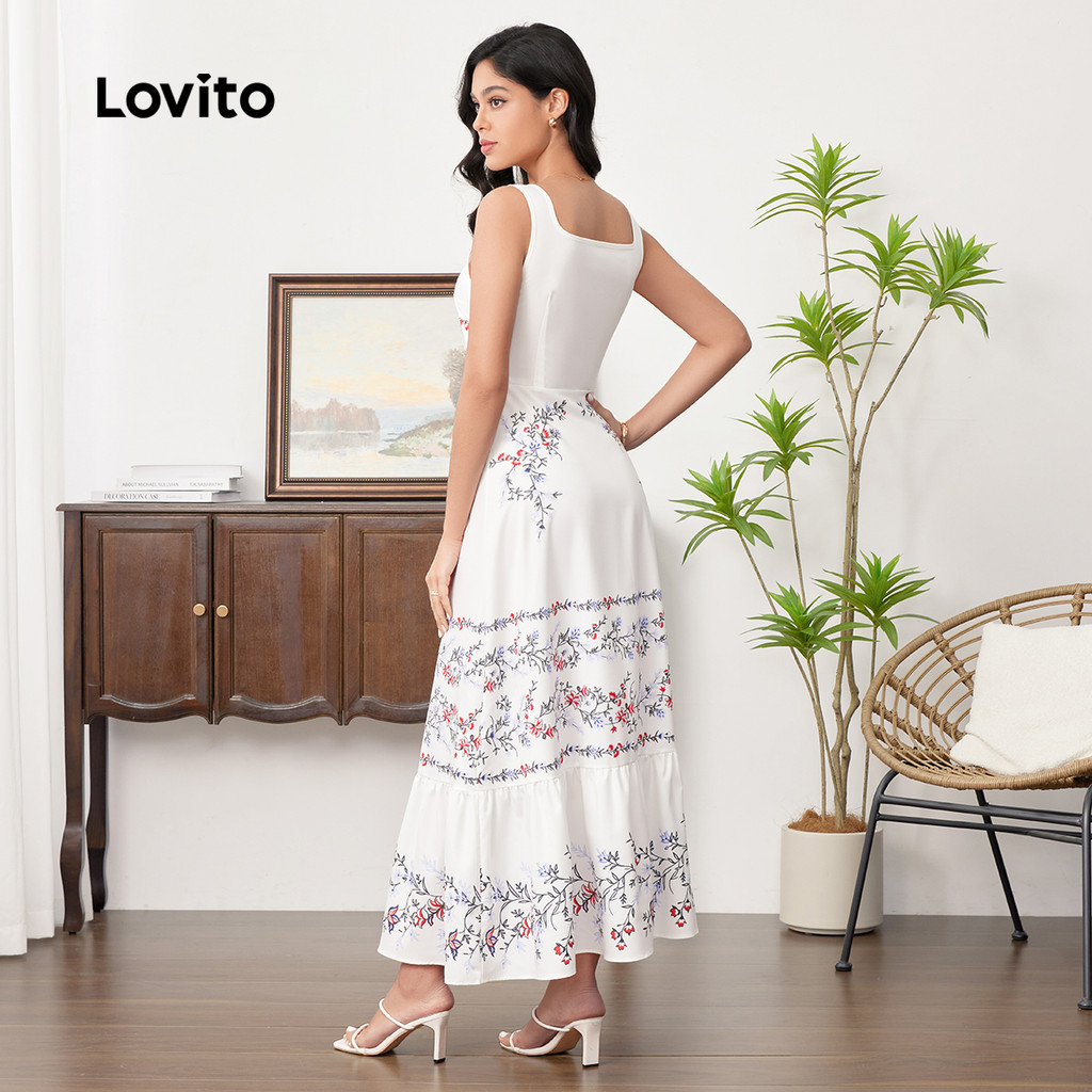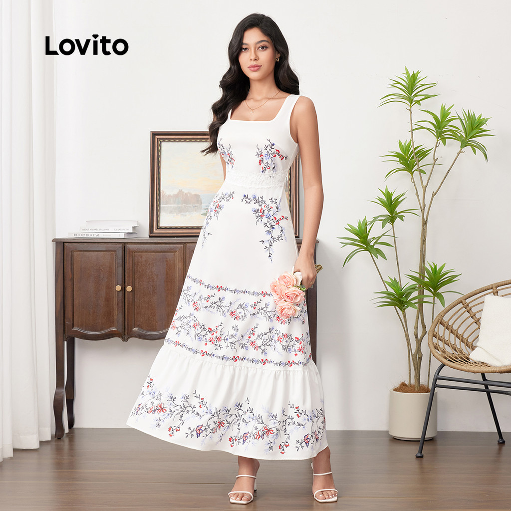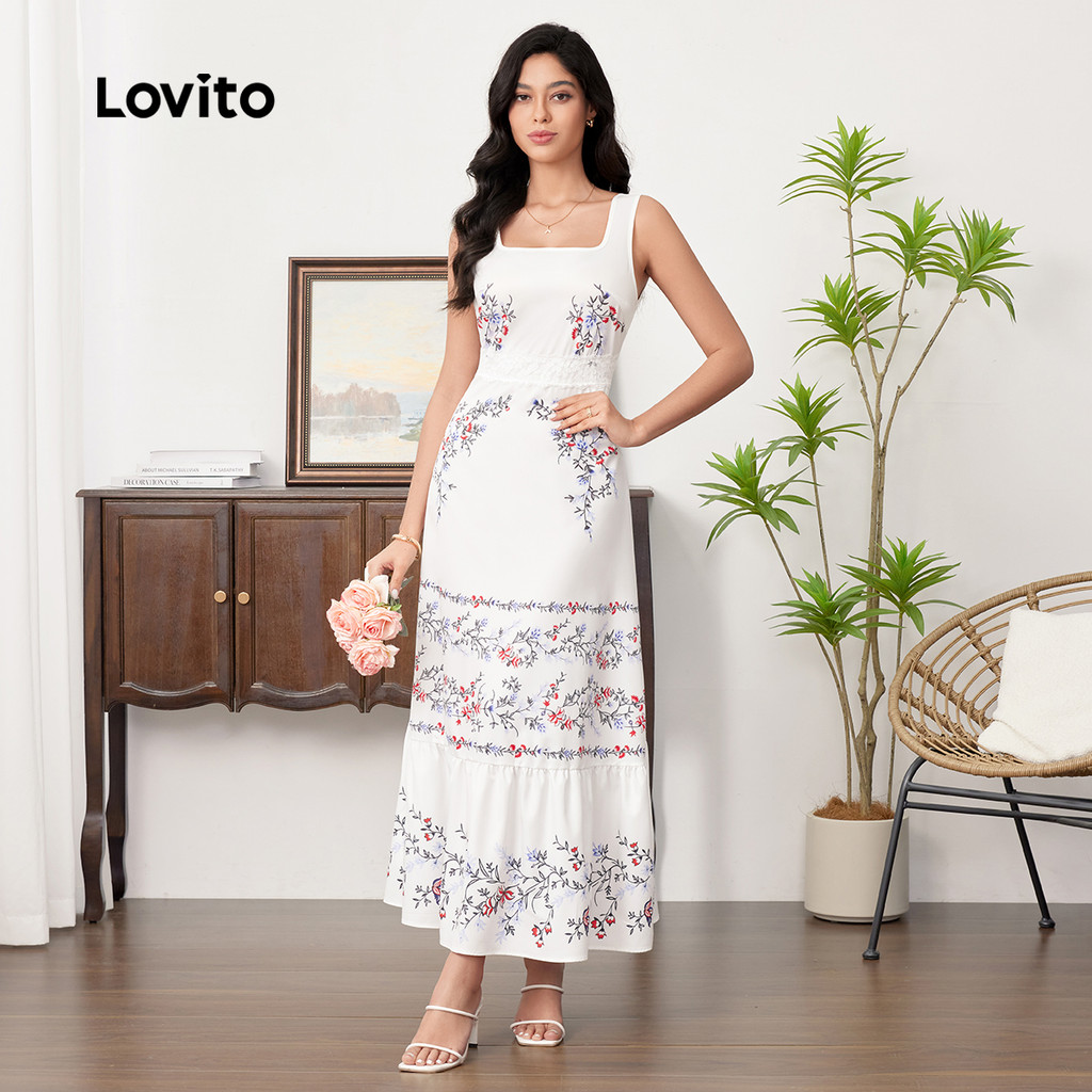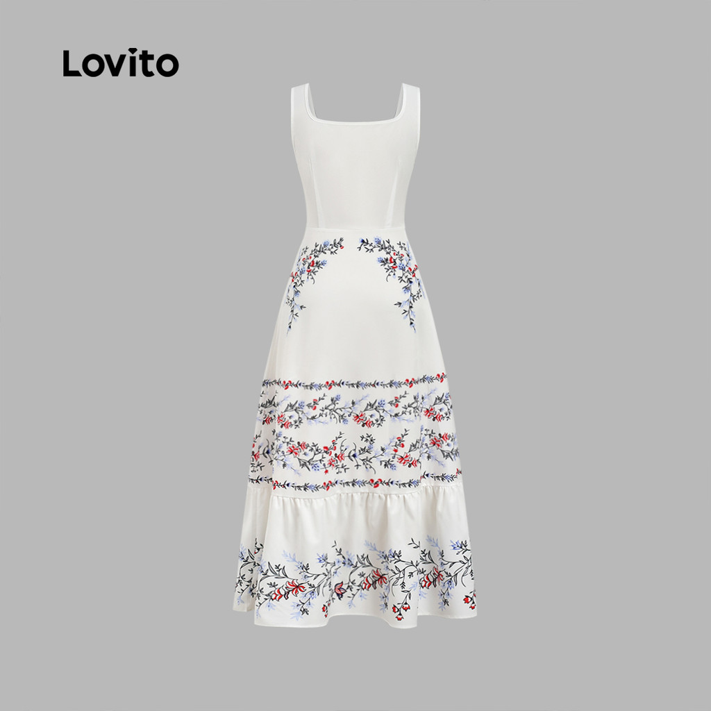 Lovito Vestido Elegante com Renda e Babados para Primavera/verão para Mulheres LBL33081