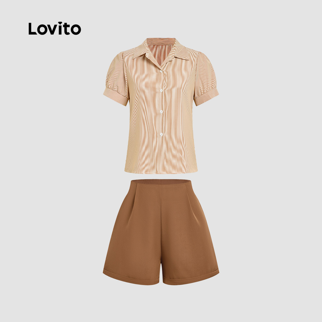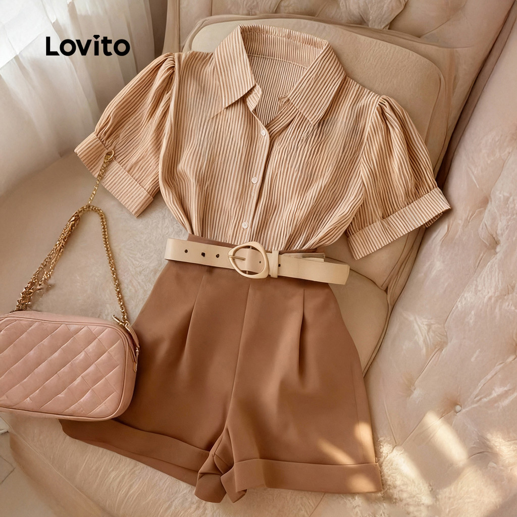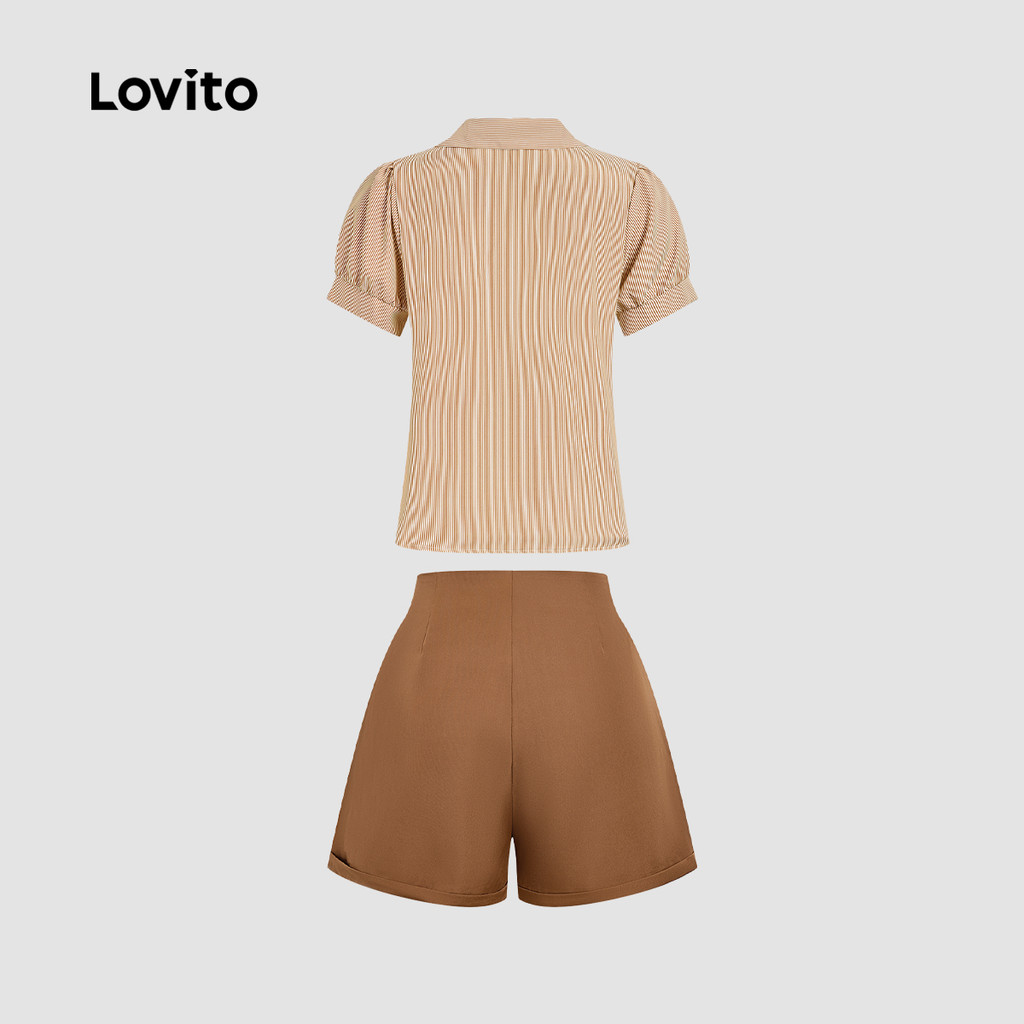 Lovito Tops ou Bottoms Elegantes com Zíper e Botão Primavera/verão Khaki Top Tops ou Bottoms para Mulheres LBL31271