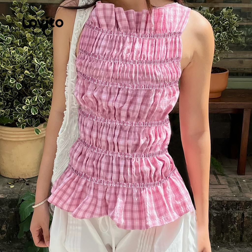 Lovito Regata Estampa Xadrez Feminina Verão Primavera L125AD139