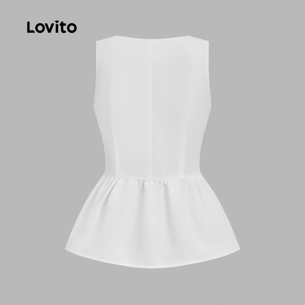 Lovito Top Elegante com Botão Superior para Lazer, Primavera/verão, Branco para mulheres. L173AD096