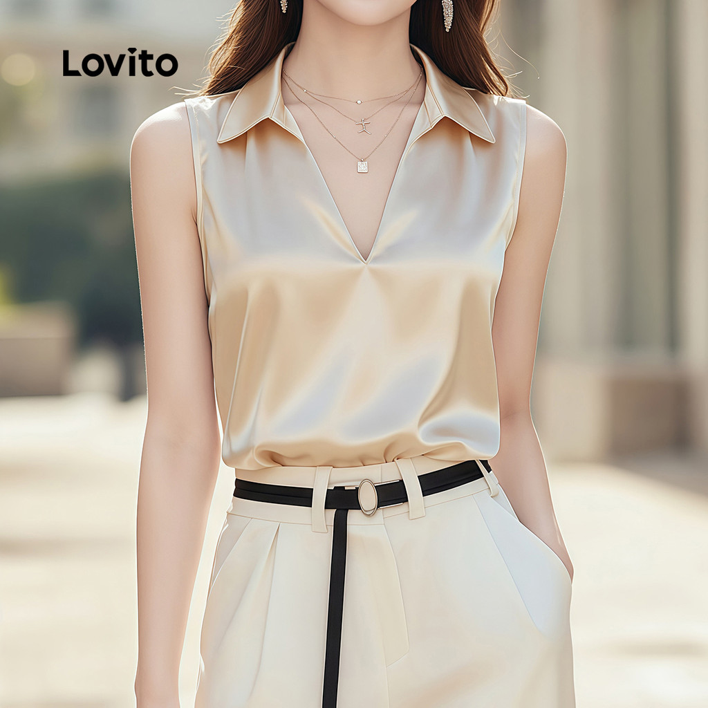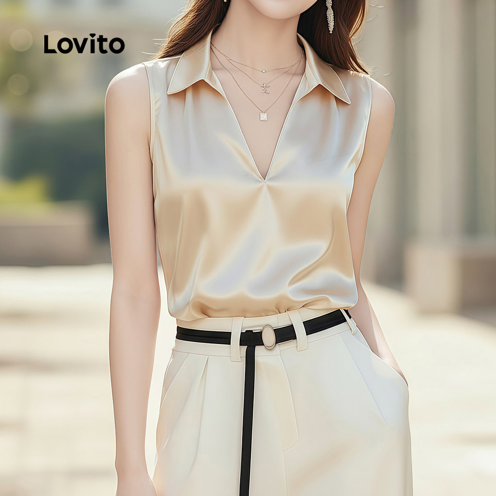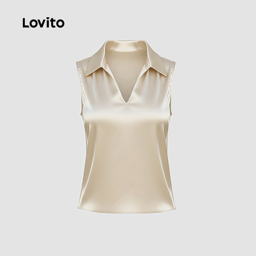 Lovito Casual Top para O Trajeto Top Champagne Refinado para a Primavera/verão feminino LK4ED893