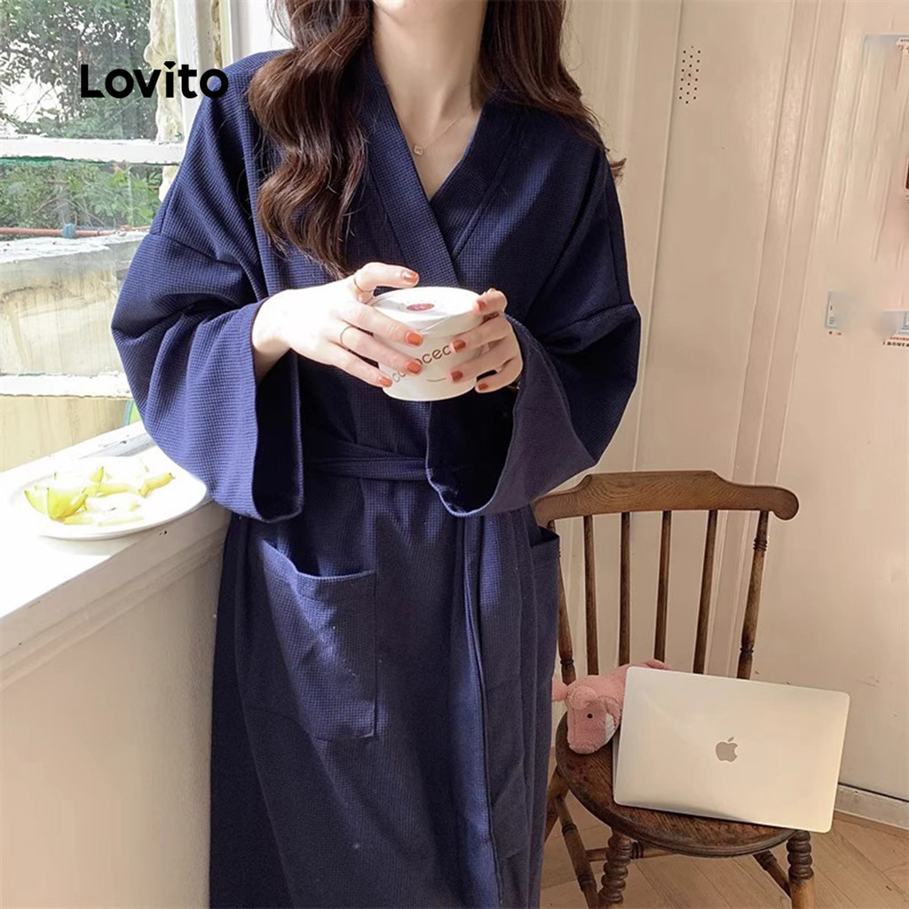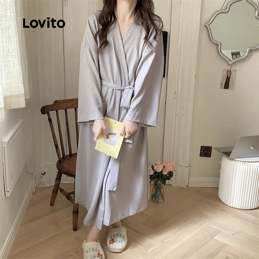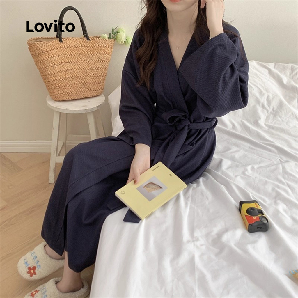 Lovito Roupão Feminino de Algodão para Verão com Cinto LNE121X022