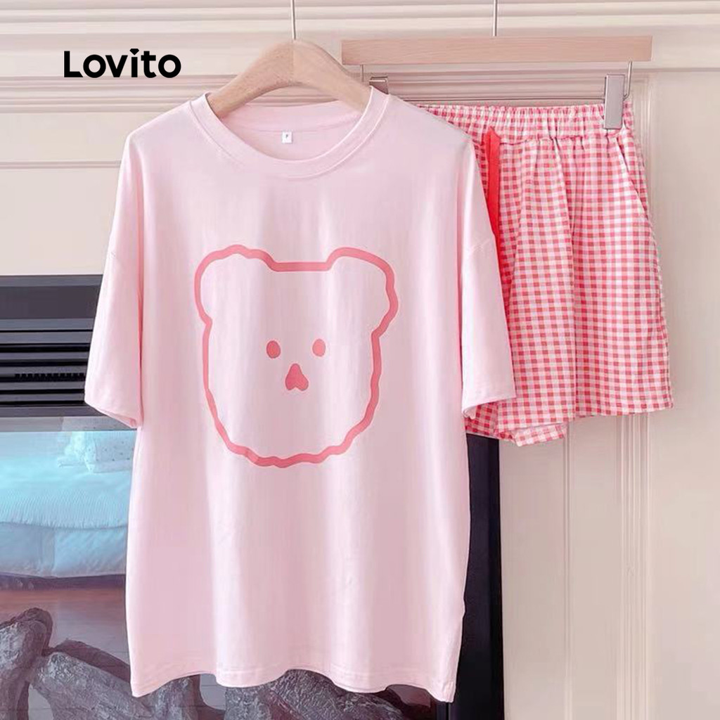 Lovito Conjunto de Pijama Duplo Rosa Fofo Feminino Primavera/Verão LNE130228