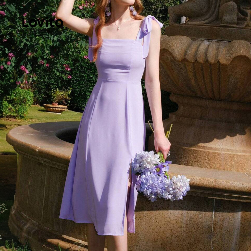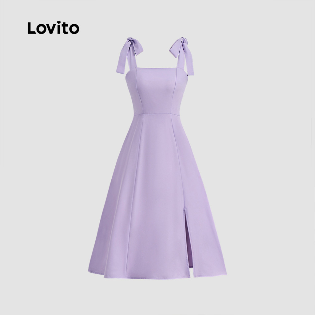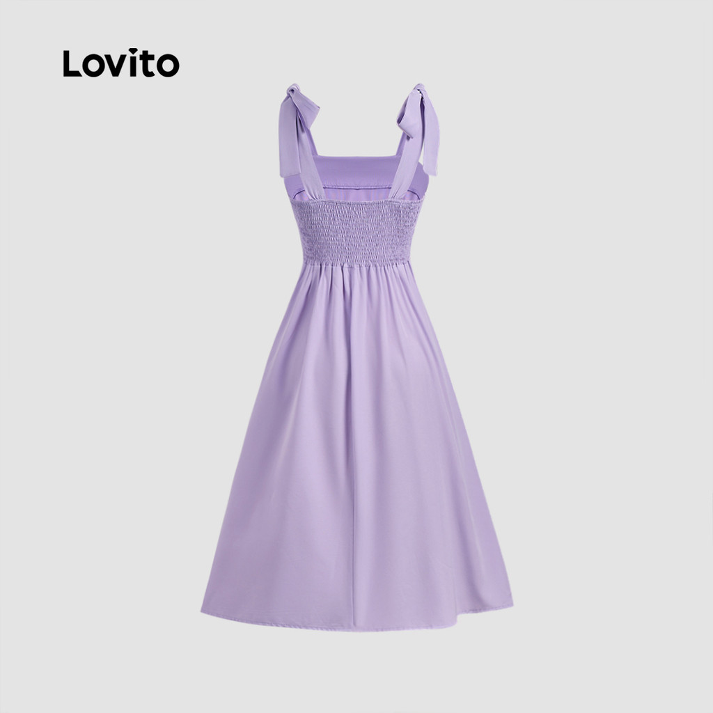Lovito Vestido feminino Casual simples com laço frontal L129ED331