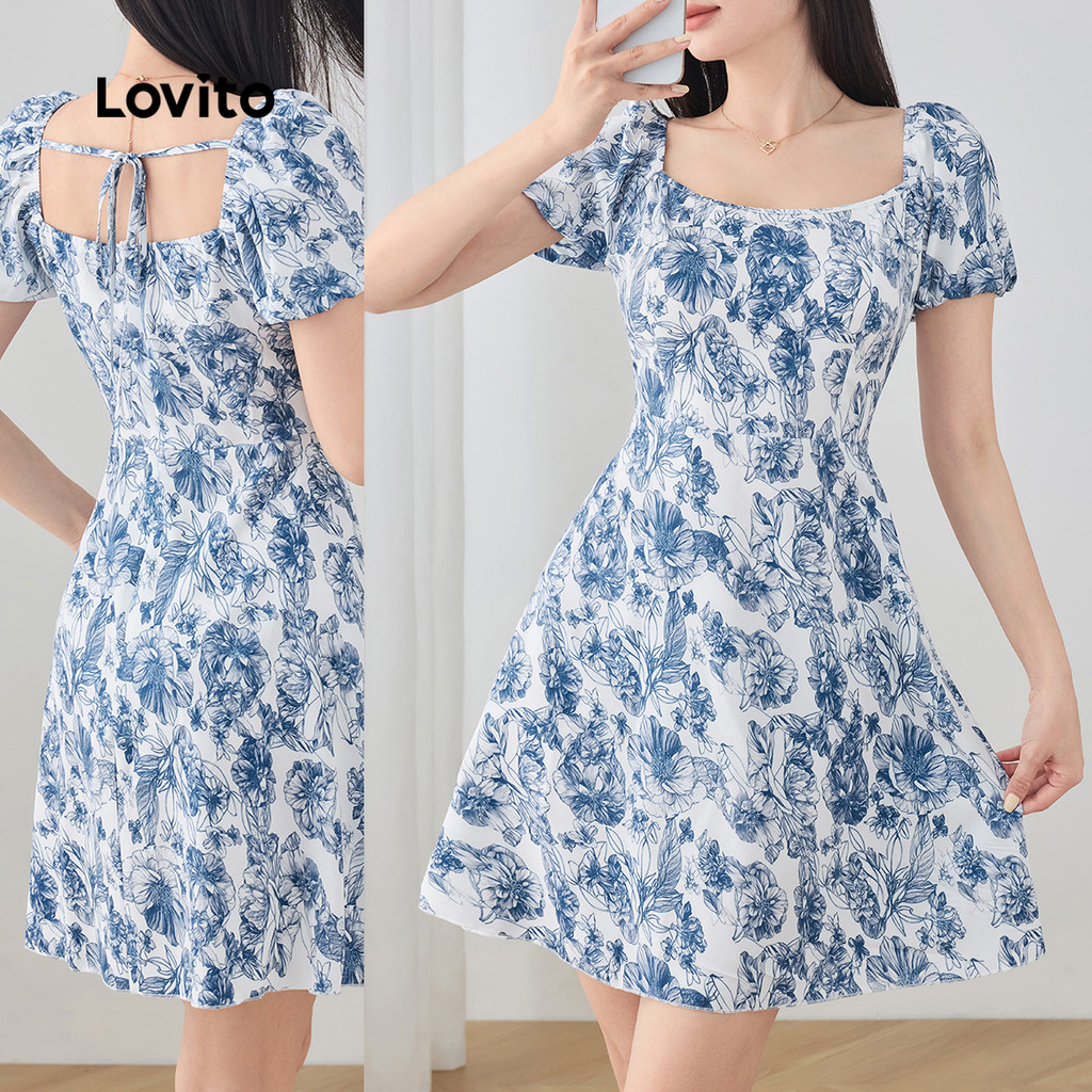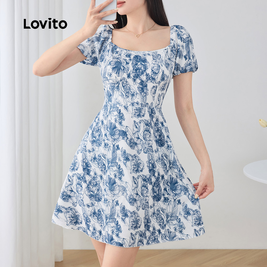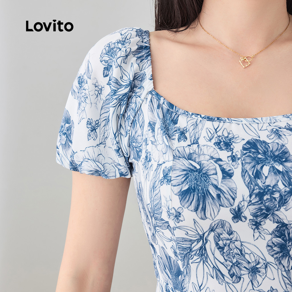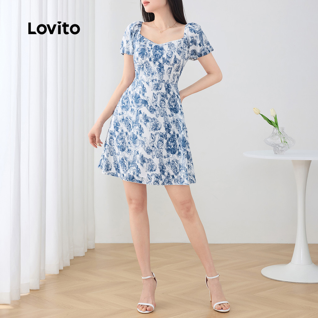 Lovito Vestido Feminino Casual Floral com Drapeado para Verão e Primavera L129AD1018
