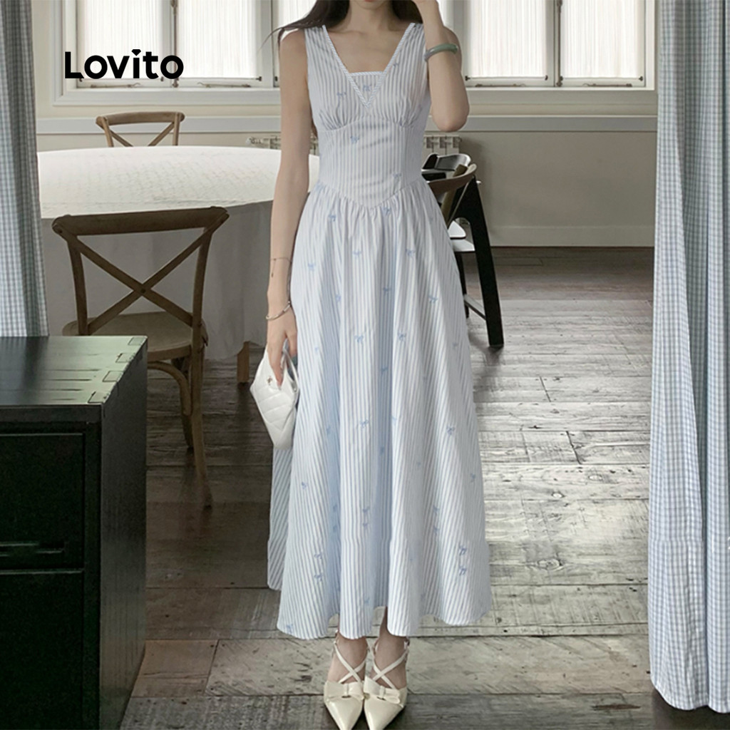 Lovito Vestido Casual Azul Para Mulheres Ideal Para a Primavera/verão L166AD995