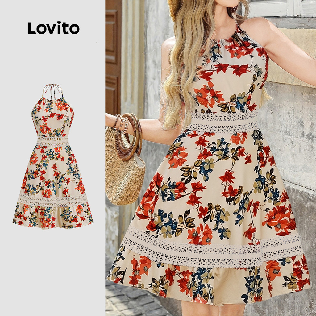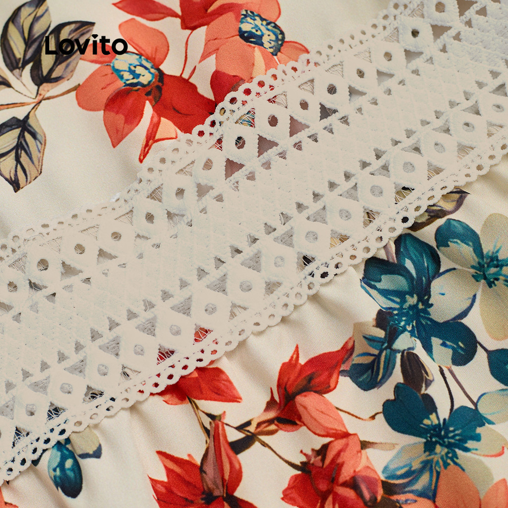 (NEW) Lovito Vestido Boho Tecido de Renda com Costura Flores Vestido Primavera/verão para Mulheres L172ED780