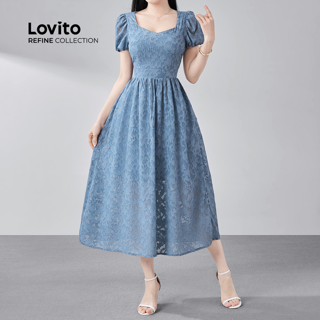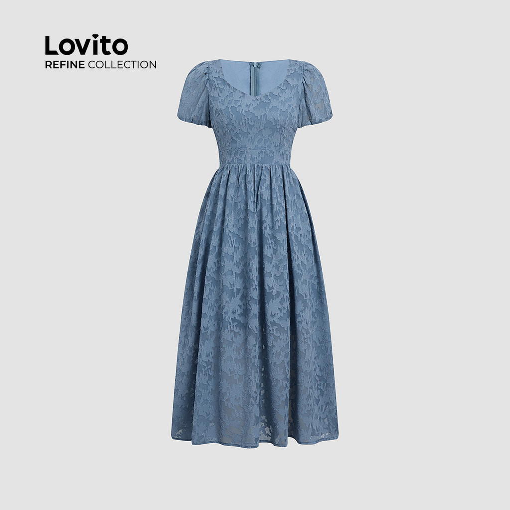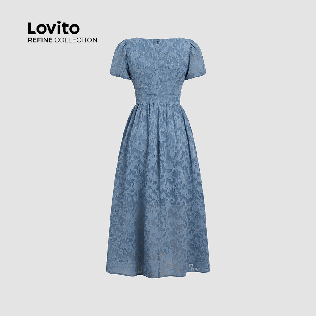 (Lovito Refine) Vestido Boho com Zíper Jacquard para Primavera/verão Azul para Mulheres LR29E004