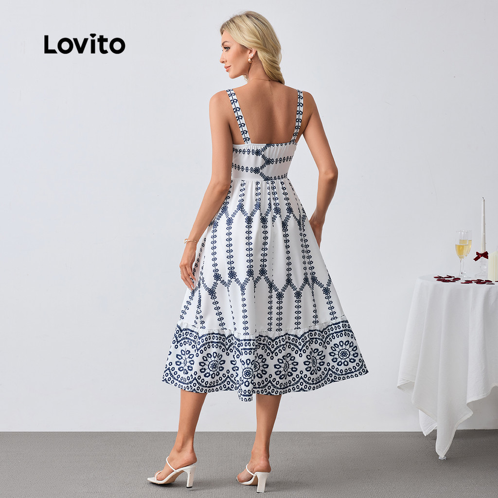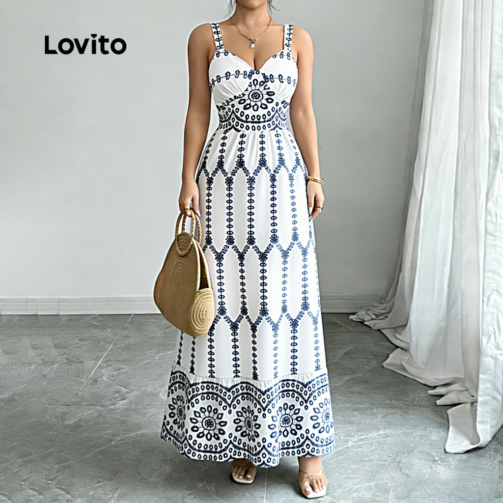 Lovito Vestido Longo Étnico Estampado Boho Zíper Azul Primavera/Verão para Mulheres LBL32064