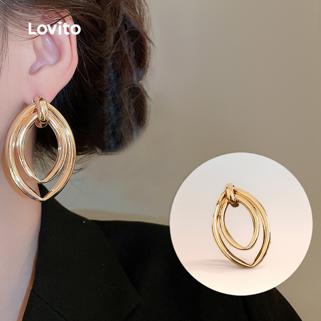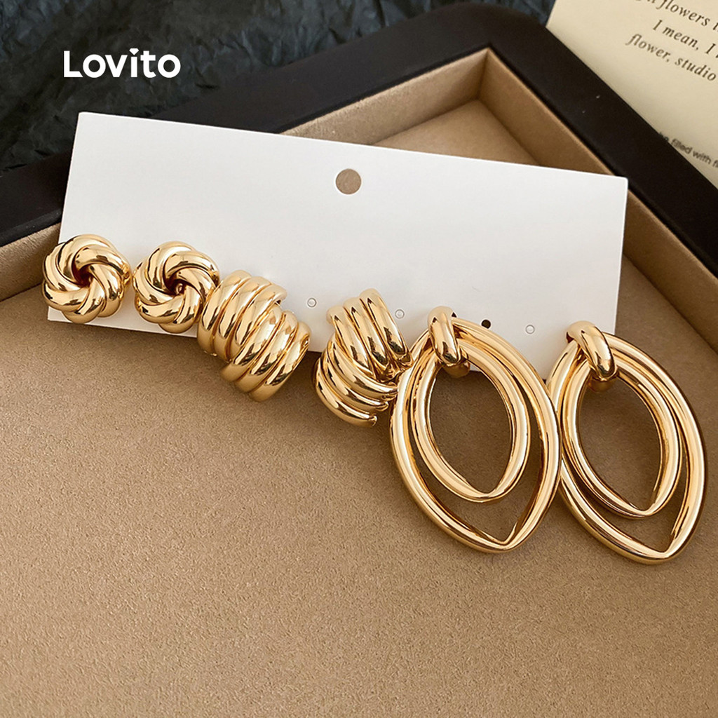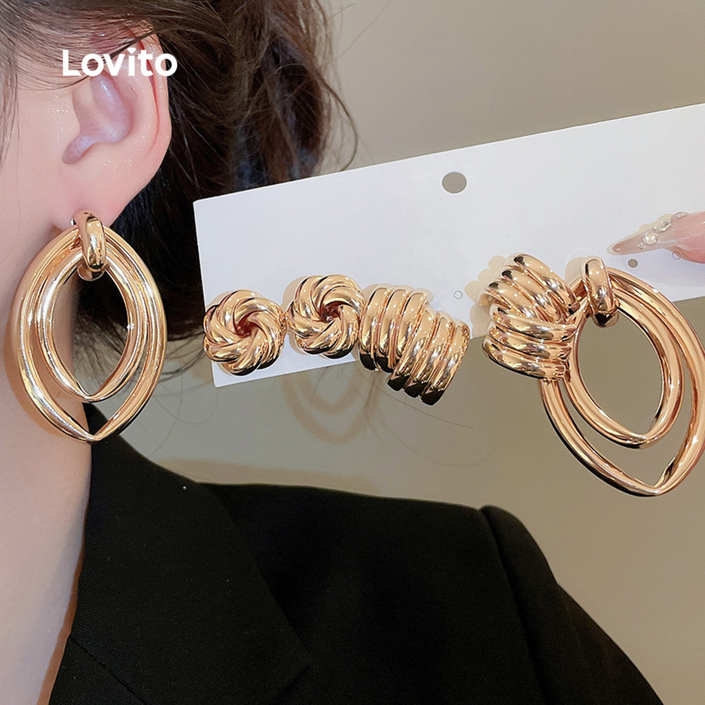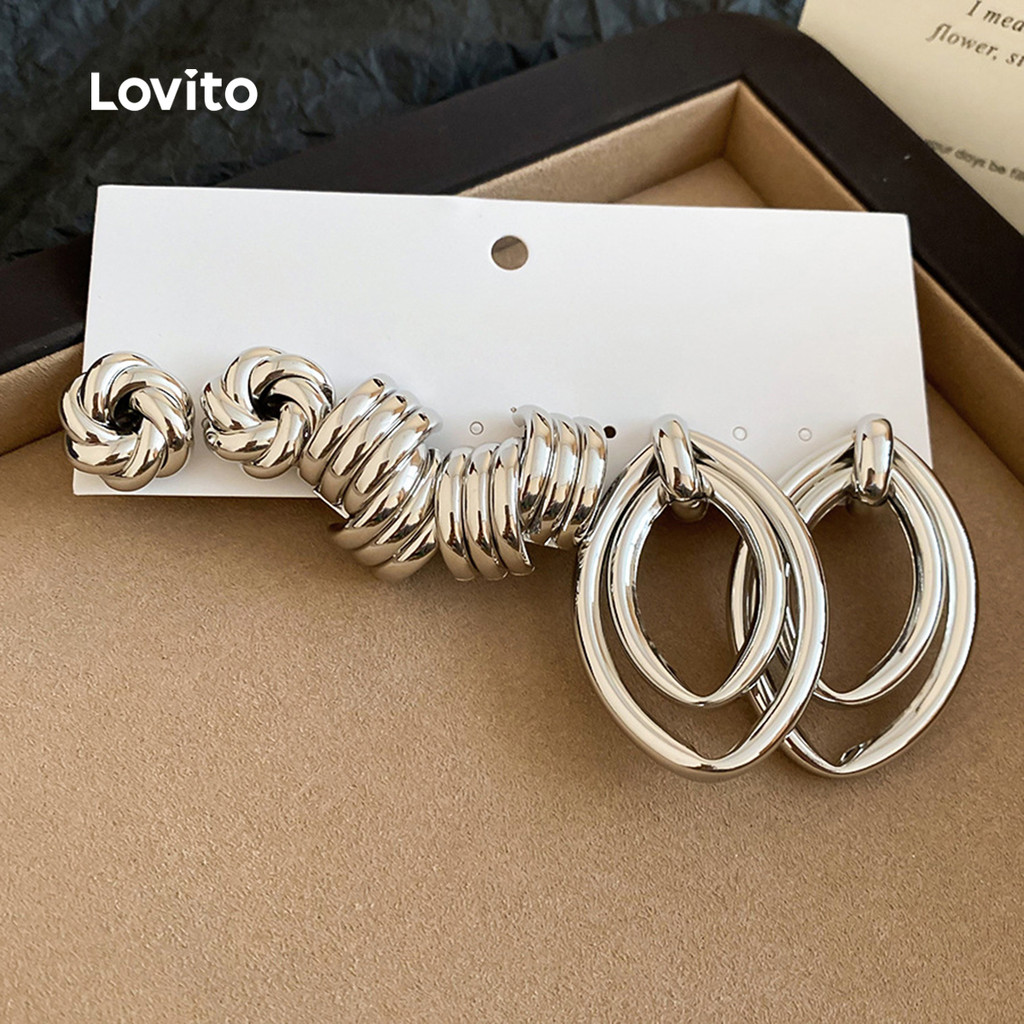 Lovito Brincos Casuais de Metal Texturizado LFA108066