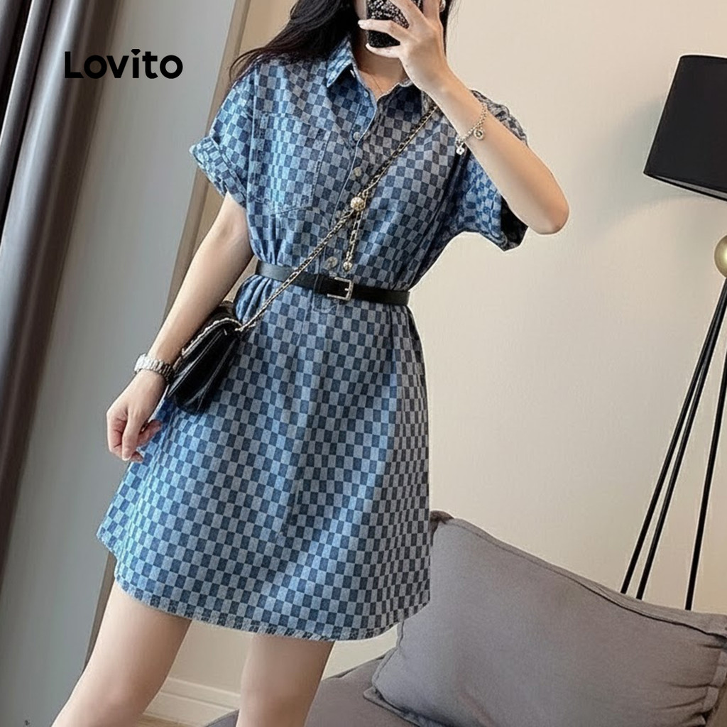 Lovito Vestido Jeans Casual Com Botões Frontais Lavagem Azul Primavera/verão para Mulheres LNE126011